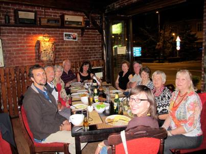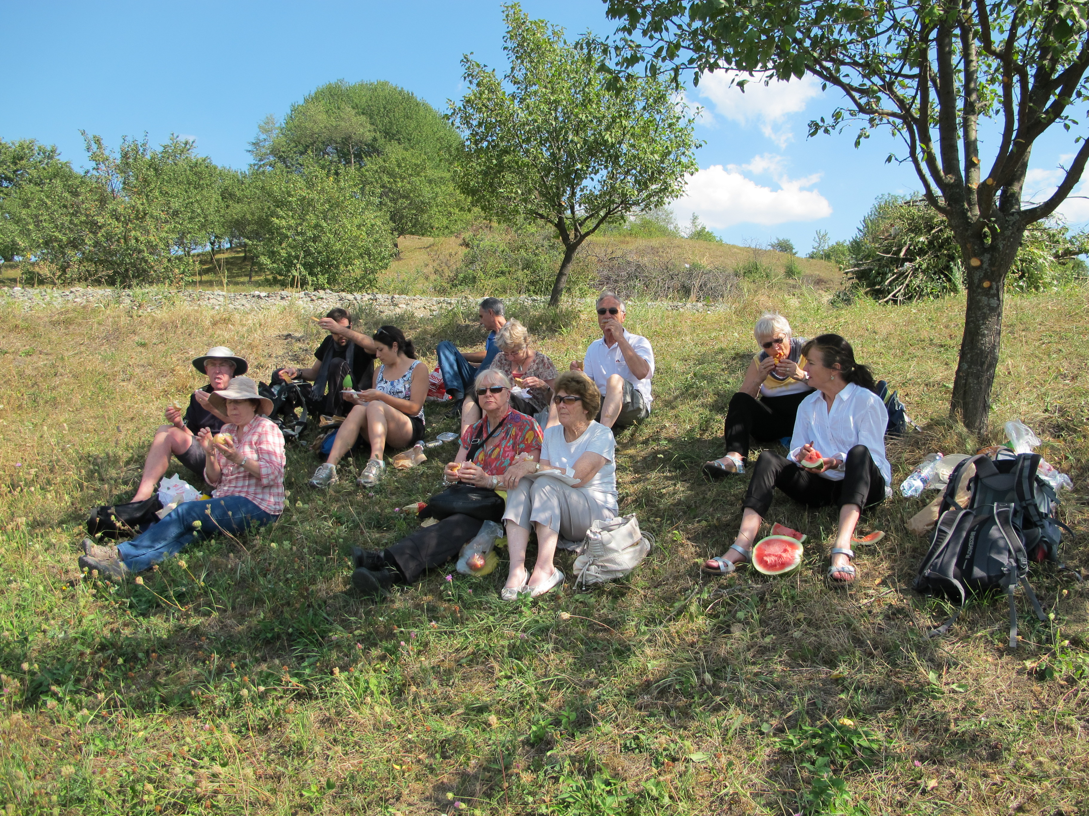 Myrna turned 60 that day and we had a fine celebration under one of the roofs in the picture above, a chocolate cake produced by Marta drenched in liqueur, and happy birthday sung in five languages: English, Polish, Dutch, Indonesian and Mexican Spanish. Then Myrna, who had spent a lot of time on this trip trying to remember all the words to Robert Frost’s ‘Stopping by Woods on a Snowy Evening’ and ‘Ragamuffin Man’ (lyrics and music by Peter Callander and Mitch Murray and performed so admirably by Manfred Mann. Don’t ask. Ha ho. If you must know we heard it in the foyer of our hotel in Budapest, and it’s a Myrna kind of song: ‘As you rise in the mornin’ rain/ Take a look down that road again/ Does the thought ever grab your mind/ For the life that you’ve left behind?/ Hey Mister etc.’), yes back to where we were, Myrna, sitting within a metre or two of a giant plasma TV near silently screening the semi-porn video Kiss channel and full of very good Romanian salad and wine, stunned us all by reciting ‘The Seven Ages of Man’. For those who have recently missed its peerless sentiments, they can be found on a post below (or above or somewhere on this mysterious site). Life can sometimes be a kind of party.