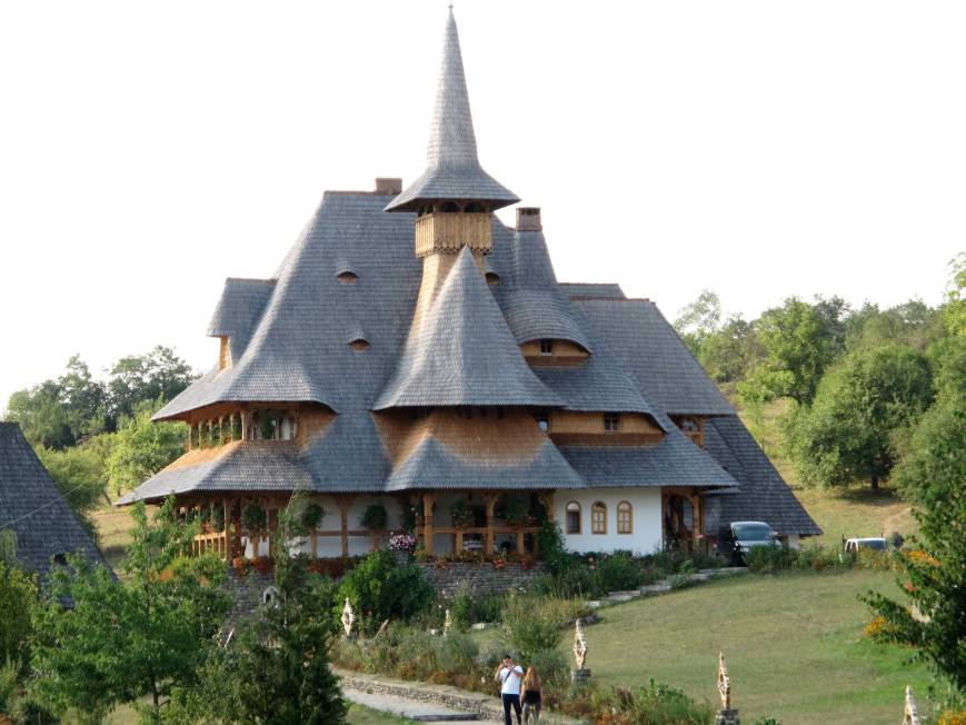 . (Double click for a proper look. Beautiful craftsmanship producing fluid forms. They don’t seem to mind cracks in the timber.) One result, the convent at Barsana, is a Romanian treasure.