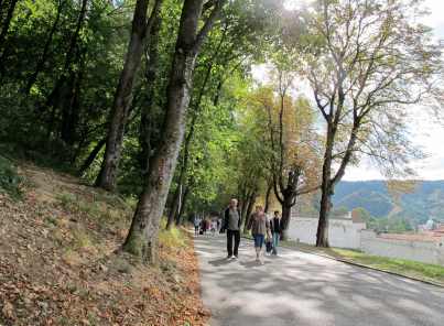 The next day was athletic. Brasov is built into the side of Mt Tampa and there are 100 ways to get to its 900m. peak, the most popular being via the cable car.