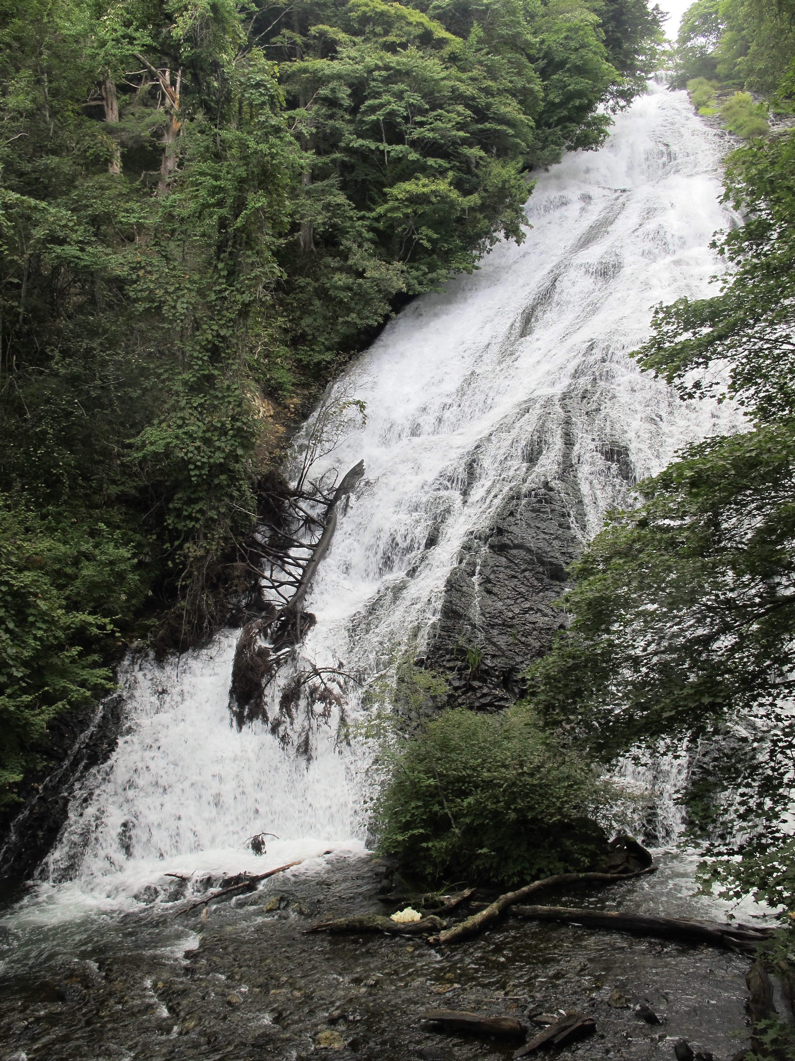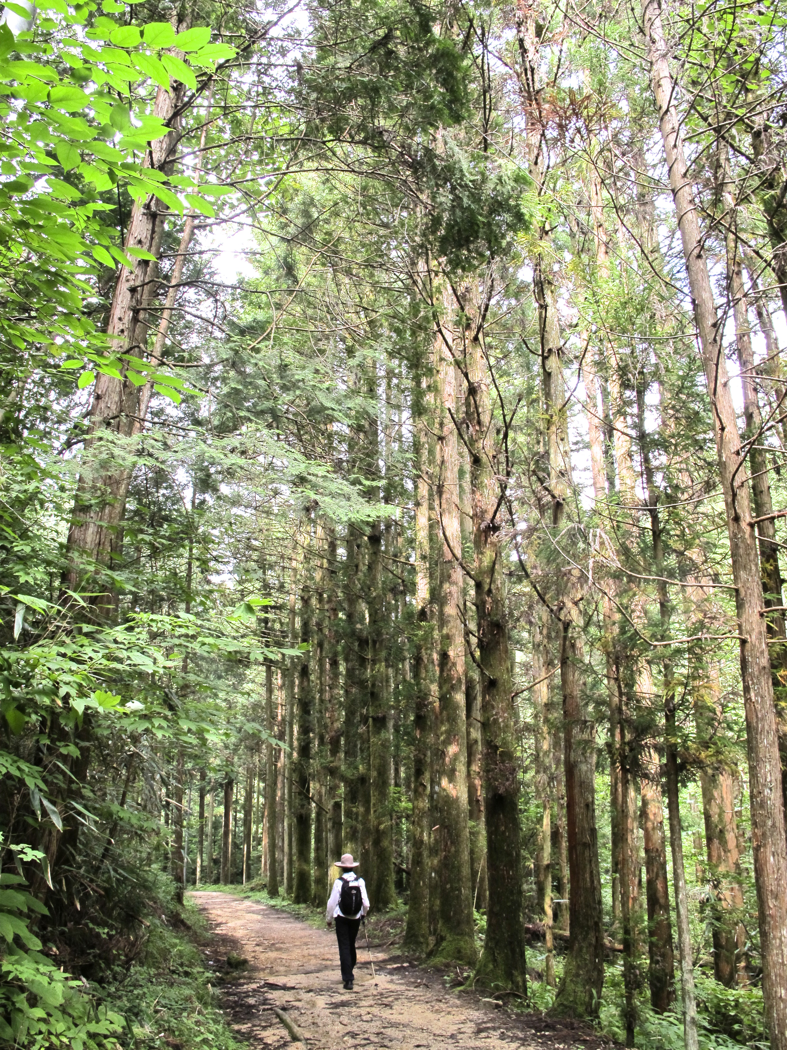 It was a real walk this day, a genuine walk. Probably 20 k.s the way we did it, with an overall 400m gain including a real puffer for an hour or so up to the Nenouetuoge, the pass of the day. And it was hot hot hot, and steamy steamy steamy. Bright sunshine for most of the day, and we were very glad of forest shade.