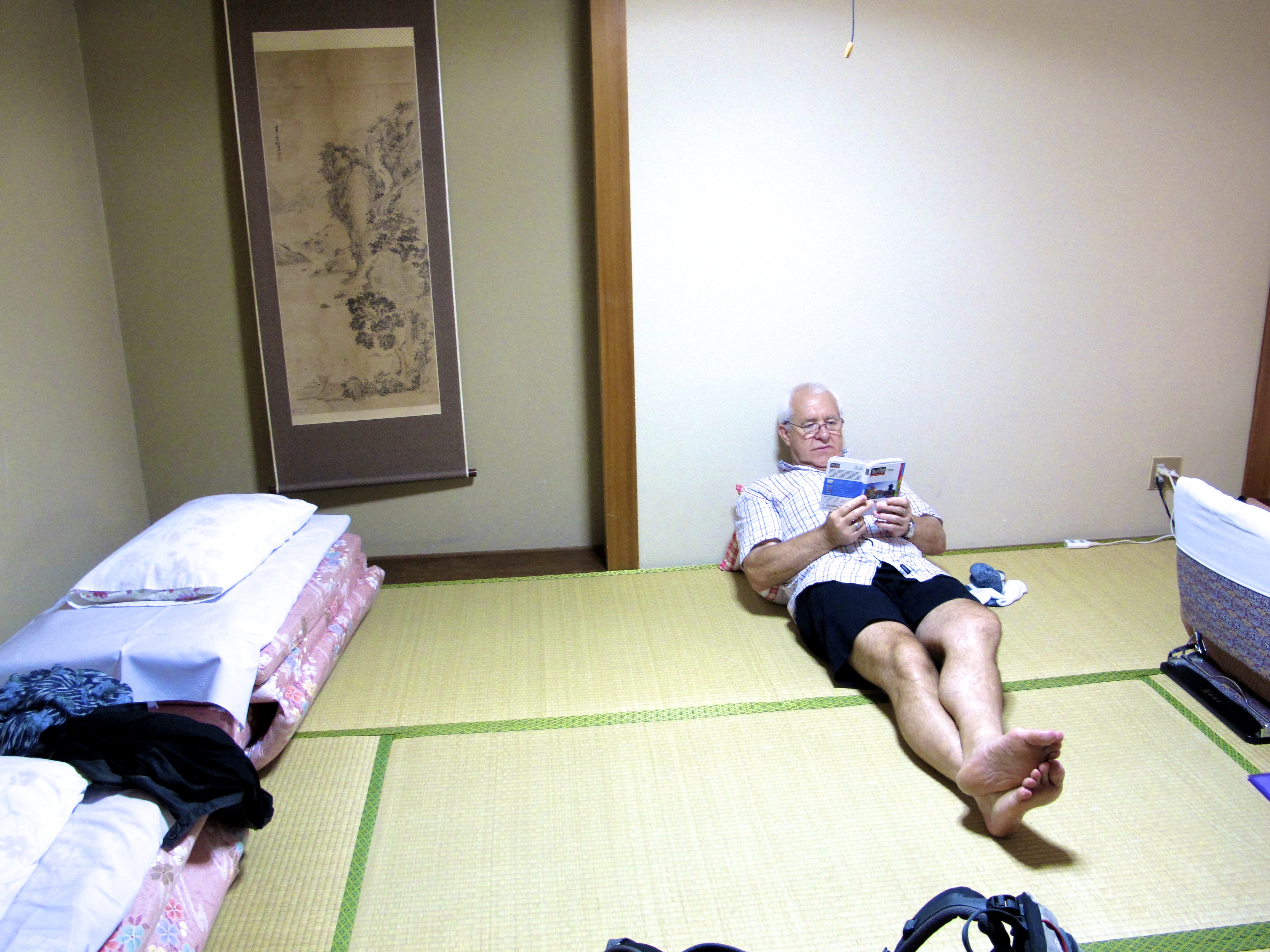 We found where they lived the next day (and where they go to church), but laughing away to ourselves, we walked the rest of the way to our ryokan thus giving us a two kilometre start towards our destination tomorrow (home really), which provided blowfish for dinner, which had a washing machine, and by a country mile the most comfortable futon I have ever slept on. And a big TV with channels in English (I watched Madmen), and muesli and pancakes for breakfast — of course — and, oh I could go on. Kuruizawa had emphatically crept into the window here and set up house.