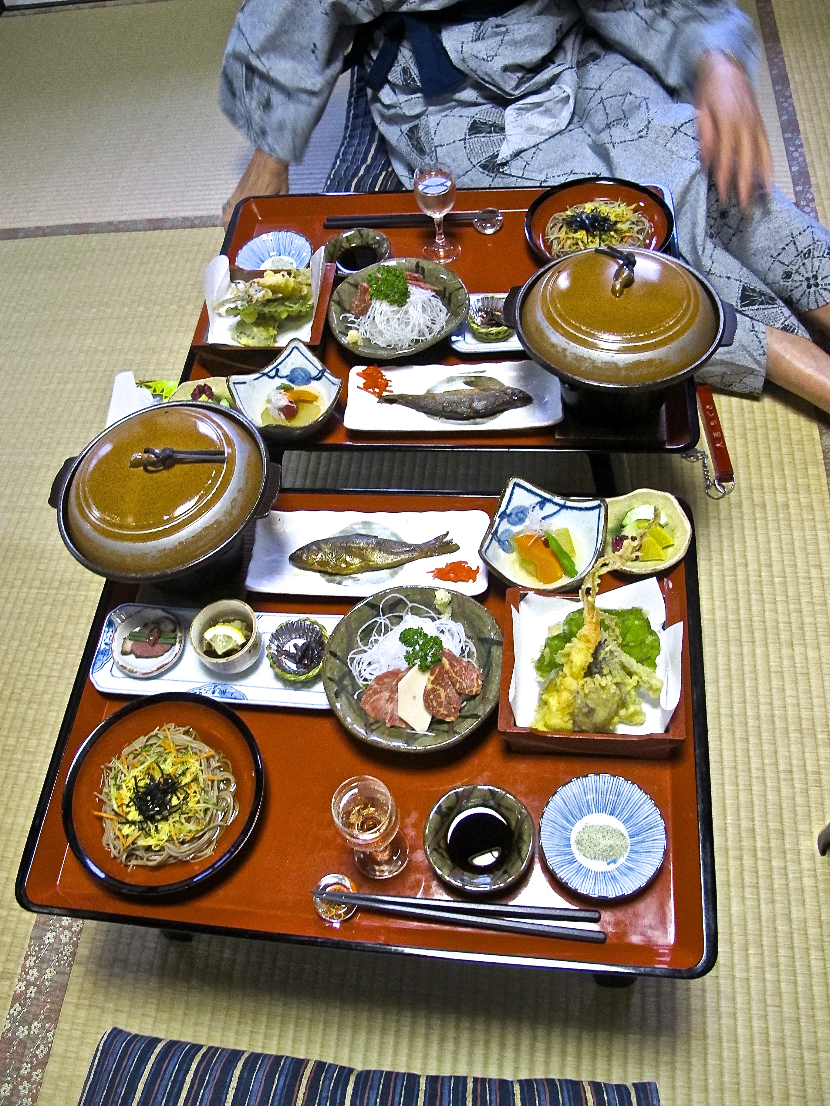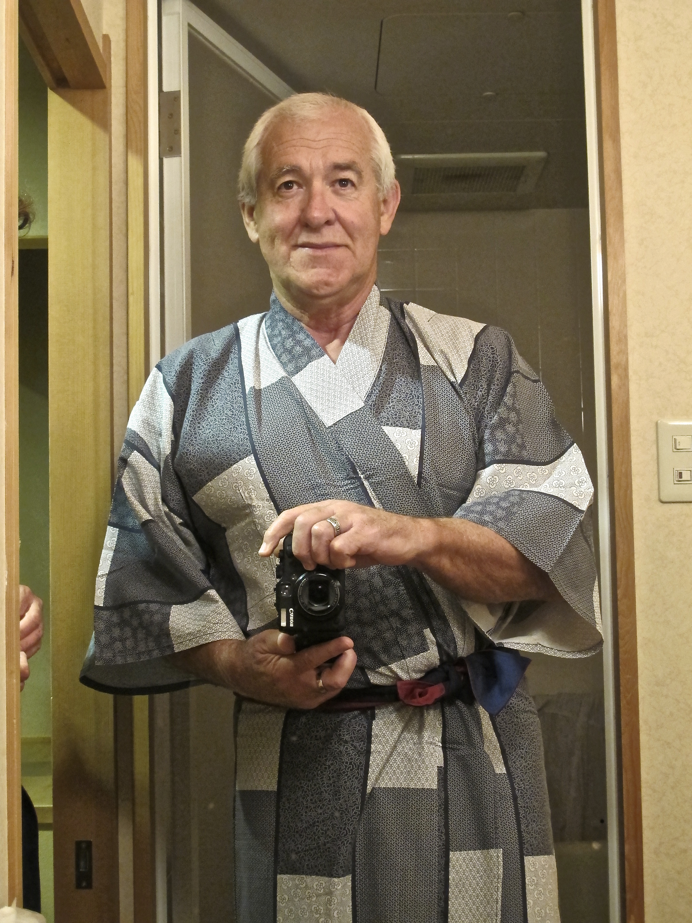 The food was great, again, and we dined with an older couple (our age that is) and a group of motorcyclists who were out on a ride. And did they have a good time! Drank a lot of beer, had the sleeves of their yukata rolled up and were ready to make a night of it. In the morning when we got up, they’d gone, and all we had to do was walk down the street to Kiso-Hirasawa, a few flat k.s following a river in spate, and then engineer our way through three trains to arrive at Kuruizawa.
