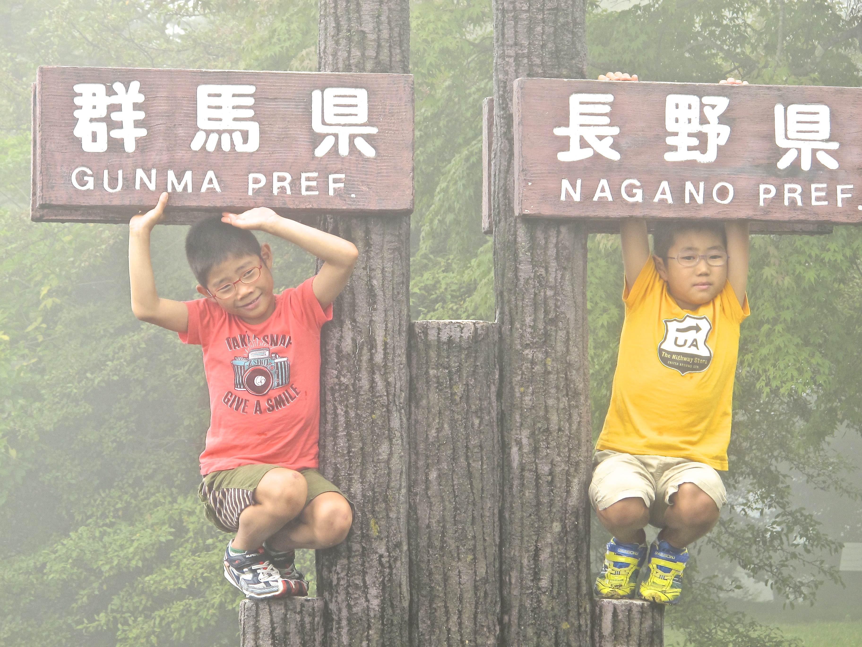 The morning was foggy and damp as we climbed up through the forest to the pass, named again inventively ‘Toge’, the dividing point between Gunma and Nagano Prefectures.