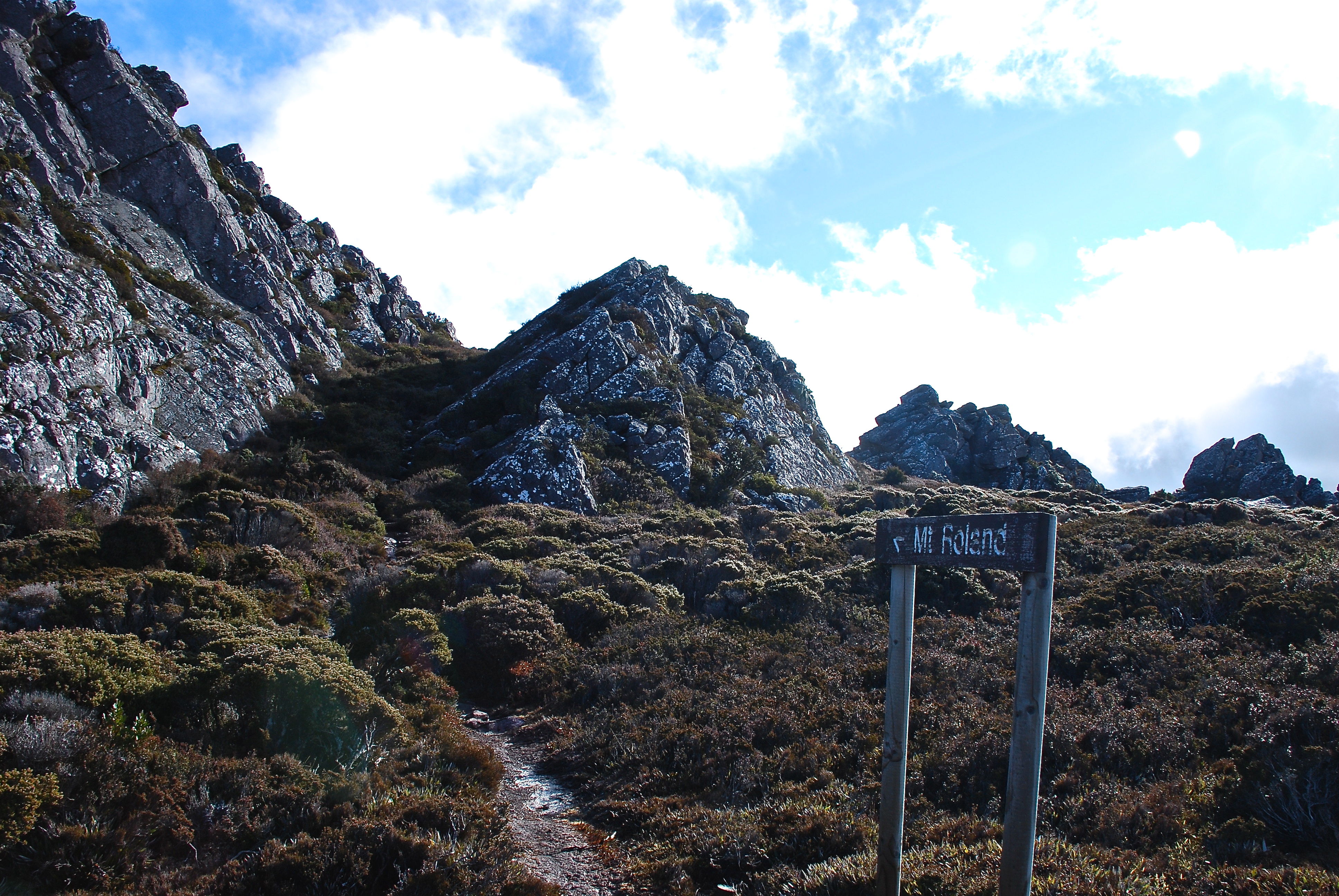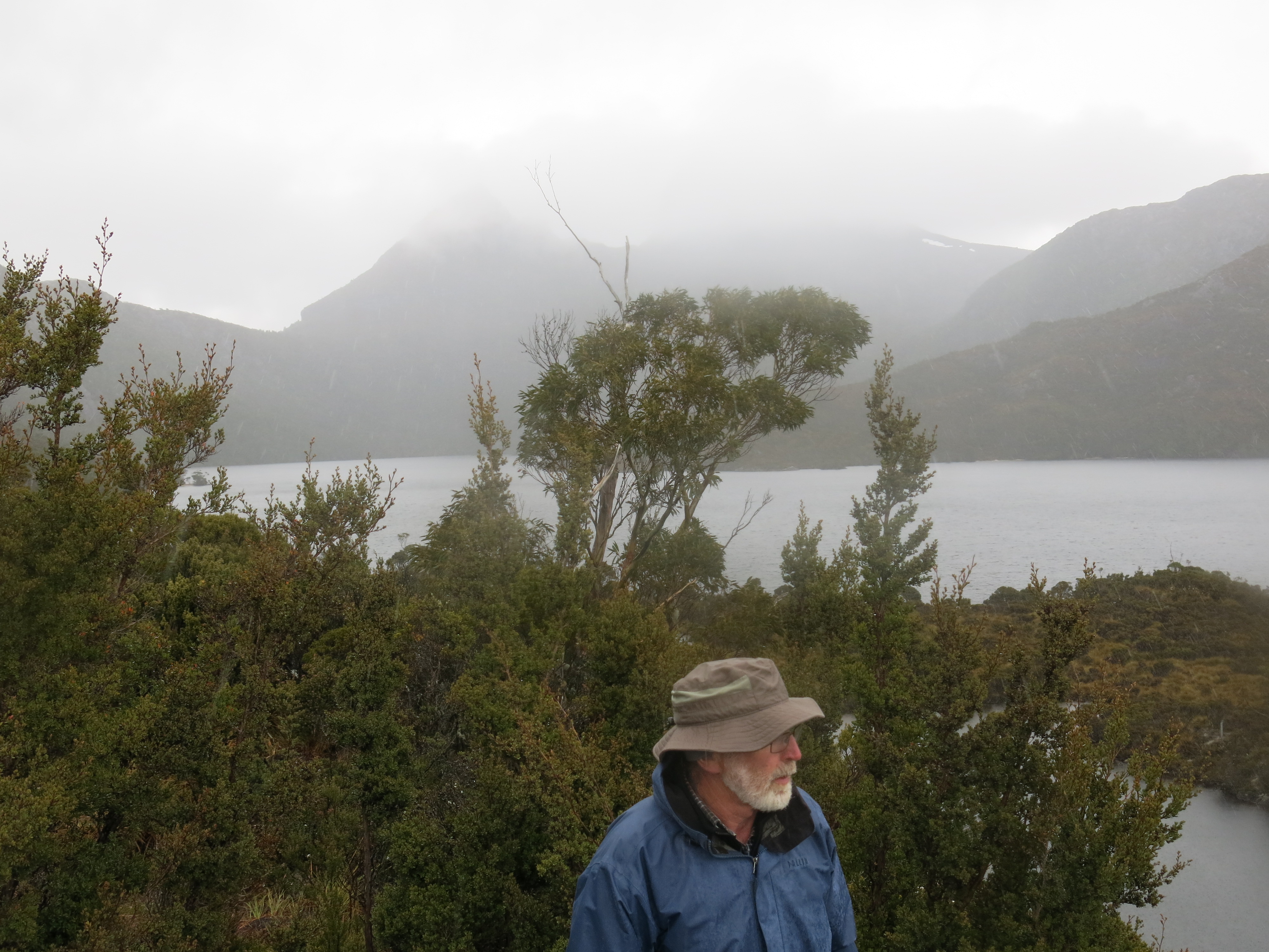 We also wanted to revisit Mt Roland which features in late sun in the header to these blogs. We’ve made an effort to climb it four times, been rebuffed twice by late starts, daunting weather and bad knees, but were successful this time again. It disguised itself in cloud and constant drizzle, but in any weather it is a wonderful mountain.