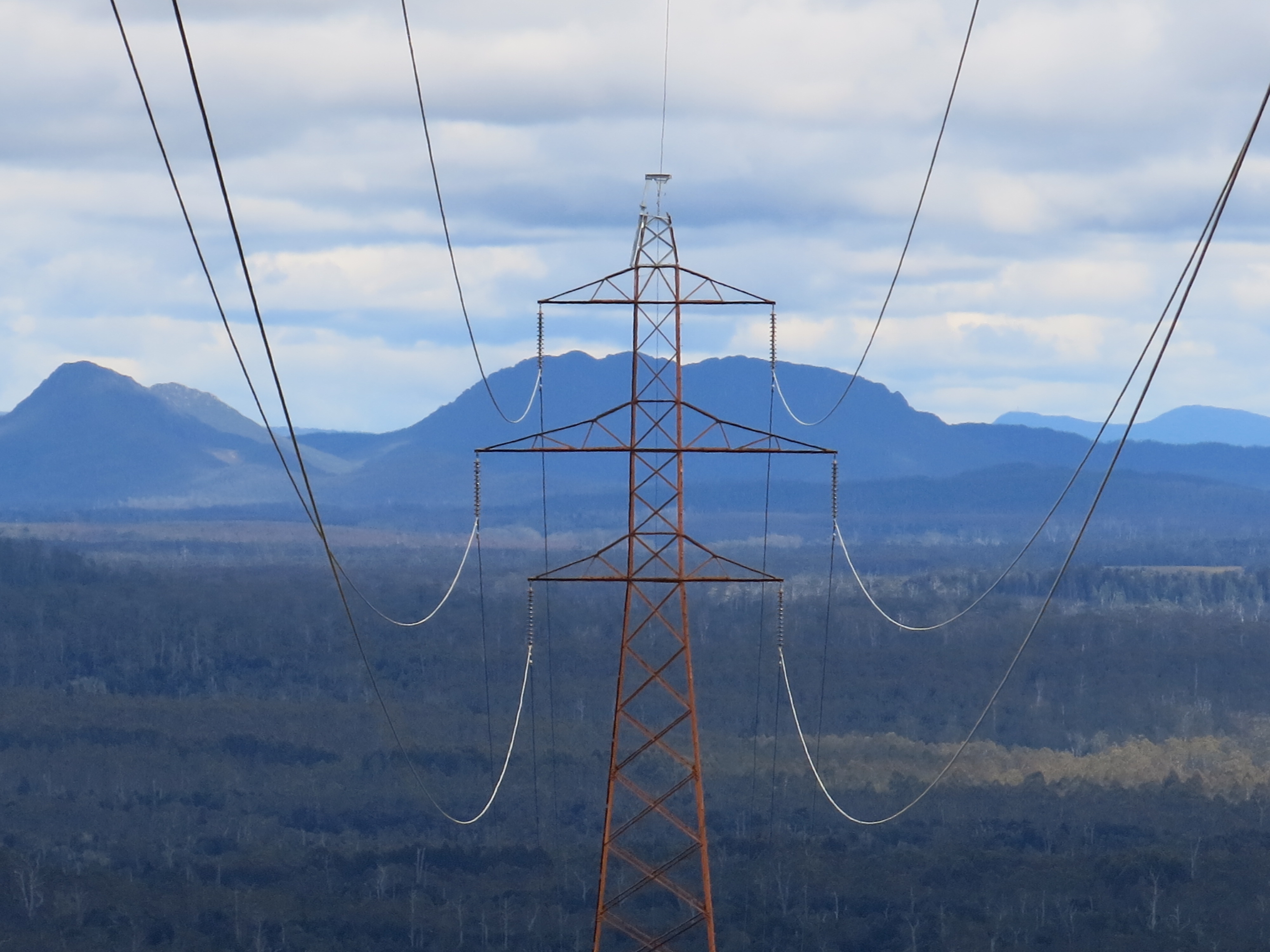 It was windy on top but the view was simply glorious, revivifying: the Pieman winding its way west out to the Southern Ocean, the Norfolk mountain range to the north, the peaks of the Cradle Mountain area over to the east and … er … the Savage River mine in mid ground. Ah yes, the Savage River mine … from which magnetite is piped as slurry 85 k.s to Port Latta near Smithton on the north coast, a most substantial feat of engineering. I can admire that. But it has prompted the incidental thought that appears below.