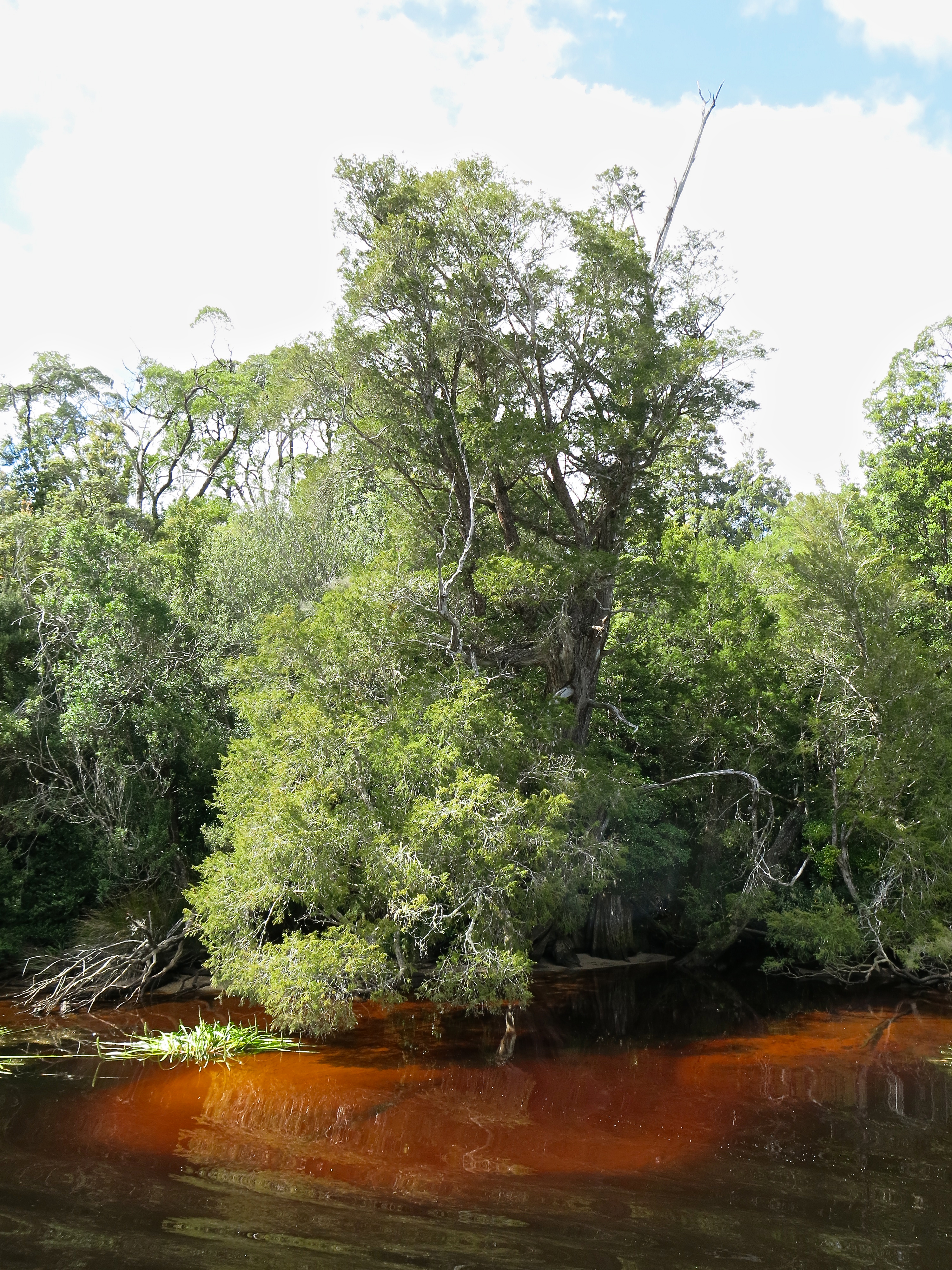 Although it can be found in the Huon, a delightful area (and river) south of Hobart, it is neither Huon nor pine. It is Lagarostrobus Franklinii, the sole species in the genus Lagarostrobos, and a podocarp, not a pine. Tightly grained and full of methyl eugenol which not only makes it smell wonderful but also makes it resistant to bugs and rotting, it was hunted along the waterways of the west coast for its ship building qualities.