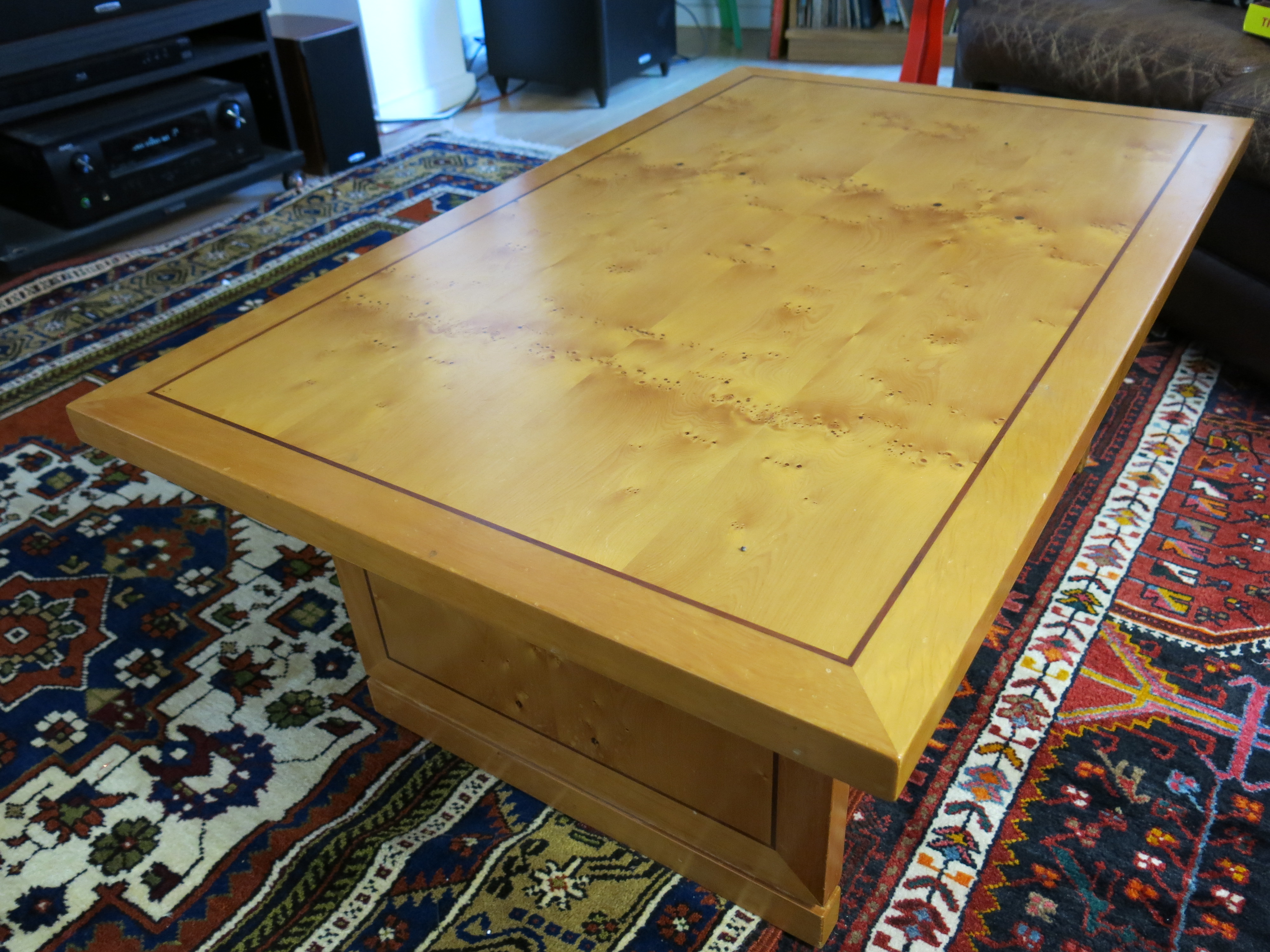 I’ve mentioned Huon pine. The table above, which I think was Myrna’s 40th birthday present, is made of Huon pine with some blackwood inlay. A day does not pass when I don’t admire it. (So many negatives. Sense: I really like it.)