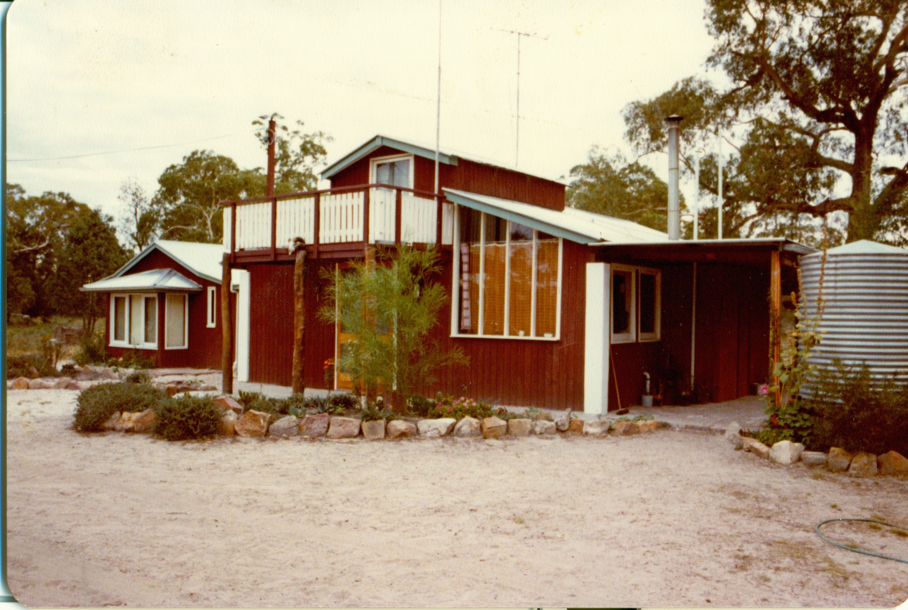 We sold the property to a service station owner who wanted somewhere to retire. He partitioned the big room with dividing walls and put a flat ceiling in, built a connecting corridor between the bedrooms and the main room, pulled up the quarry tiles and tried to straighten the fireplace, lifted the toilet pan, put pickets around the back deck, got the power on and painted everything.afterwards