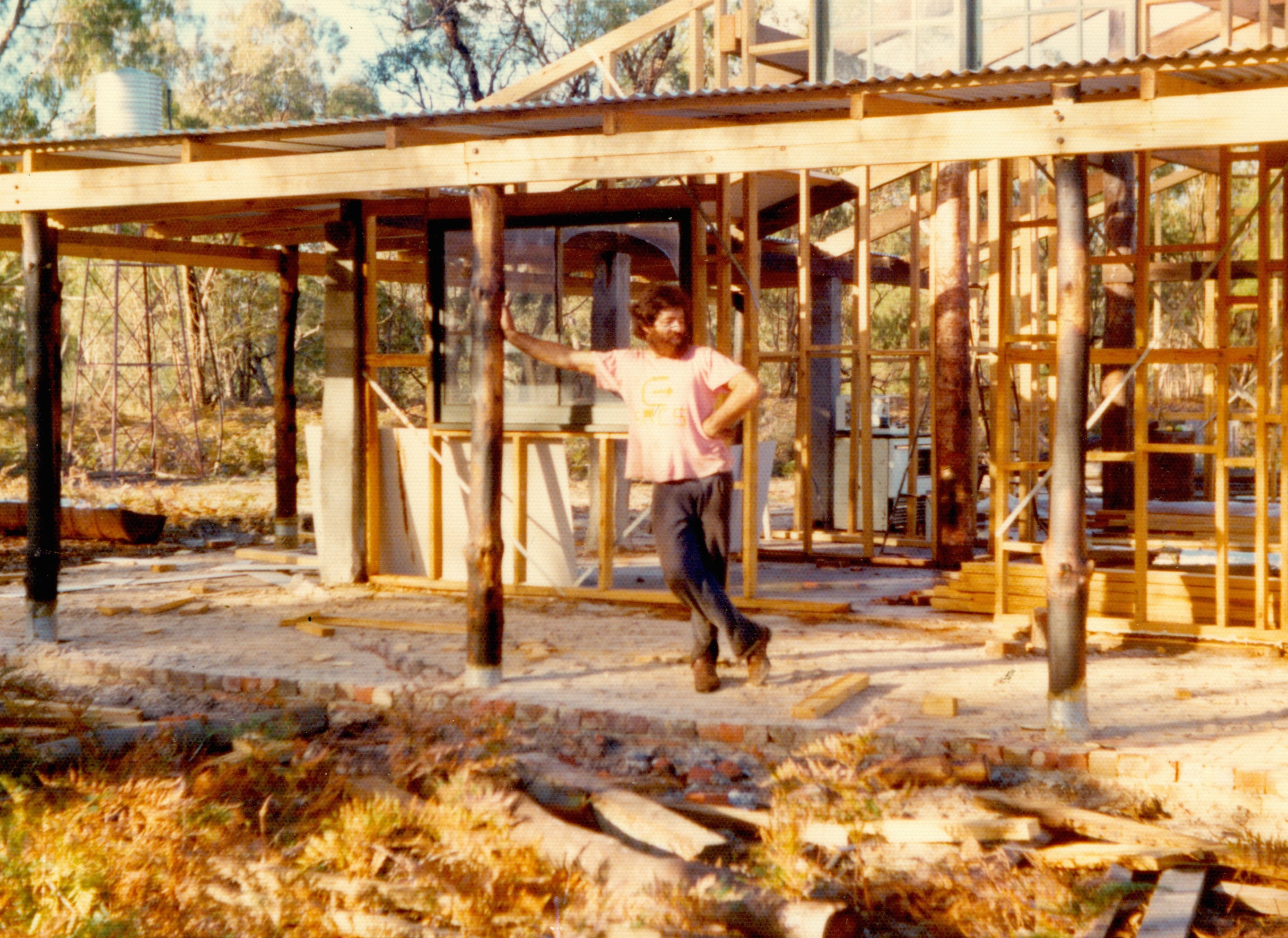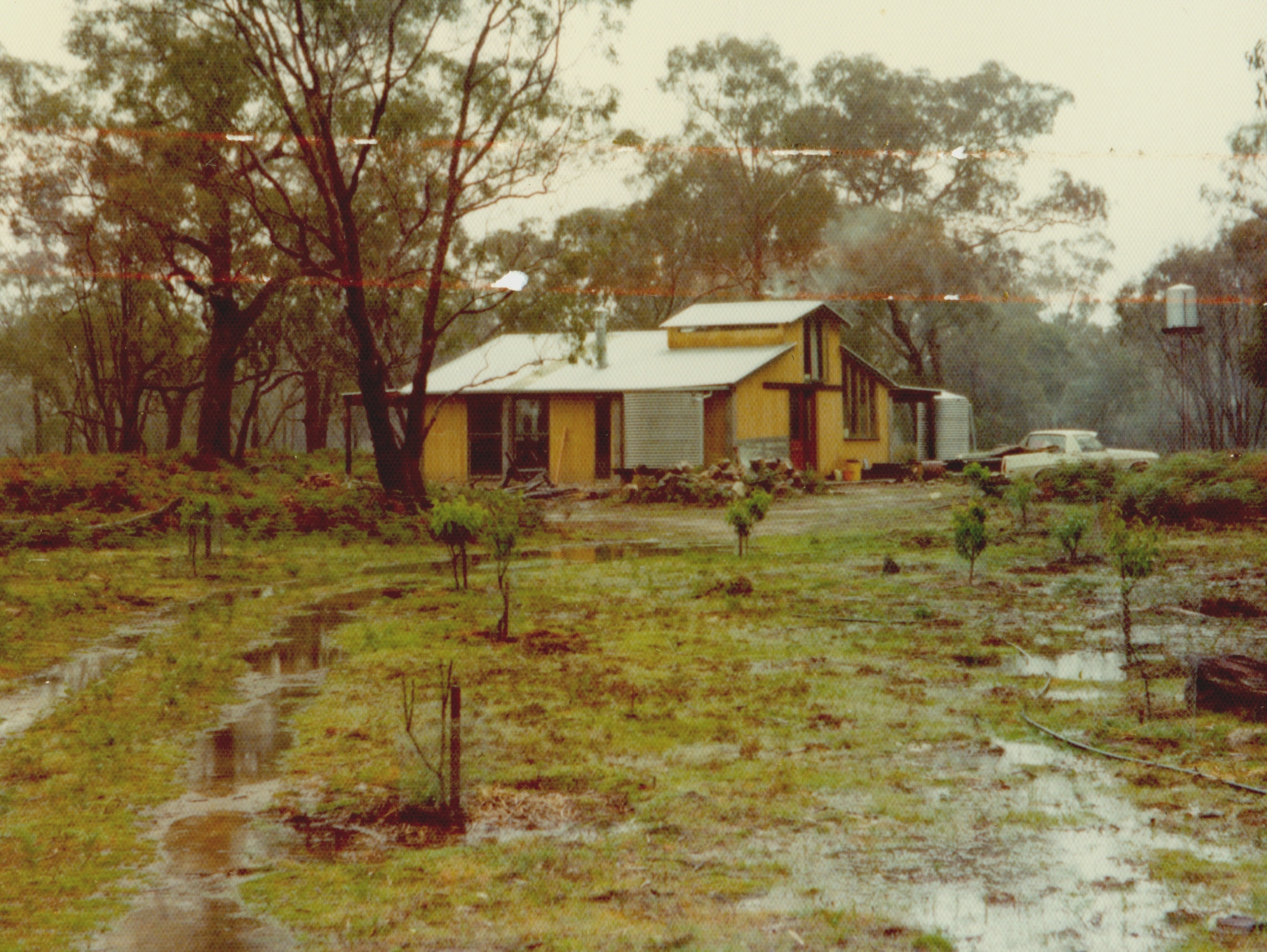If we’d been doing this at Molyullah, a softer and more settled landscape, it would have been different. Girin Flat wasn’t virgin country; it had been logged by sleeper cutters and there were remnants of a camp half way over to the creek. But it wasn’t that far off. At Molyullah we would have been starting with cleared land (surrounded by national reserve), we would have had sheds, a garage, sewerage, a phone, water and power. At Girin Flat we had none of those things, which was partly the point. (Or was it? I don’t remember thinking about it much).