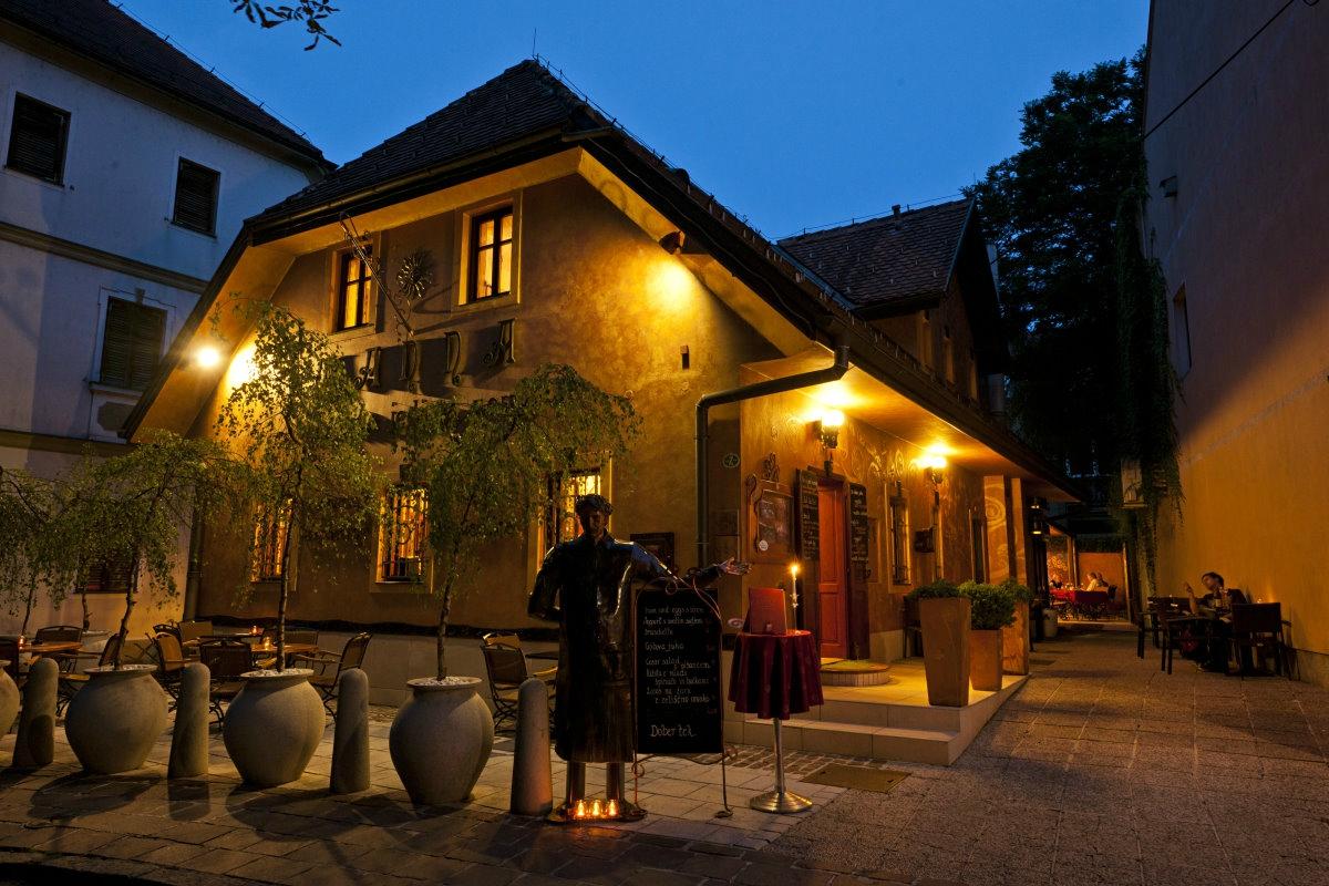 Two middle-aged guys who just loved everything they did took us in hand and led us through the delights of Slovenian cuisine. The buckwheat dumplings in a mushroom sauce were the best eating. But the best moment came when one of them ‘aired’ the wine glasses by swirling imaginary substances around in them until they had reached the correct state, a condition which could be discerned only by an expert.
