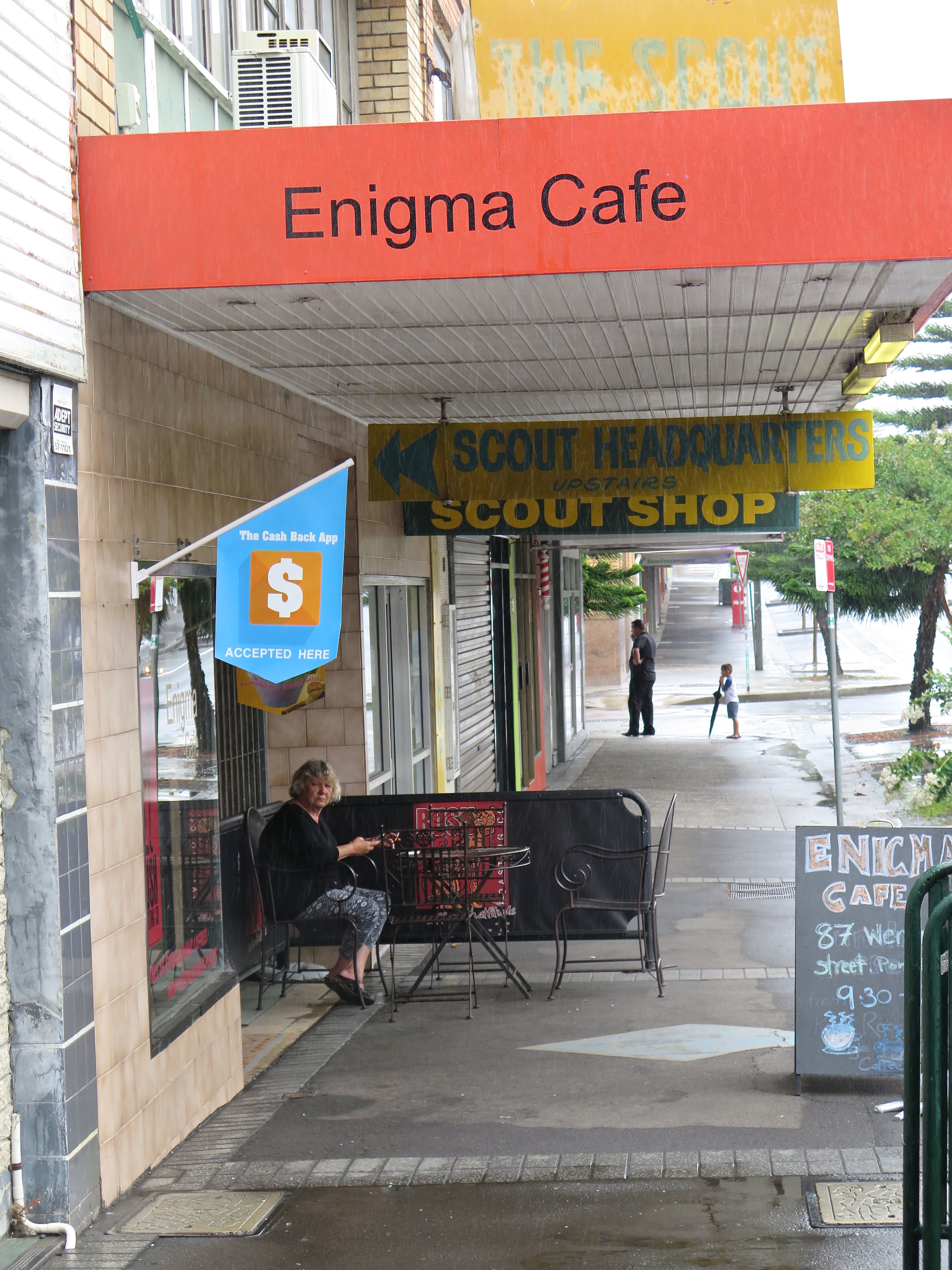 A couple of months ago I was due to make a visit to Illawarra Sports High not far away in Berkeley, had an hour to kill and needed a cup of coffee. I turned down Five Islands Road and took the funny little Darcy St dogleg to get me into Wentworth Street, drove down the hill, up the other side, did a U-turn and drove back again. I bought a paper and was directed to the Enigma Coffee Emporium where I met Julie and her excellent coffee and very fine home made cake.