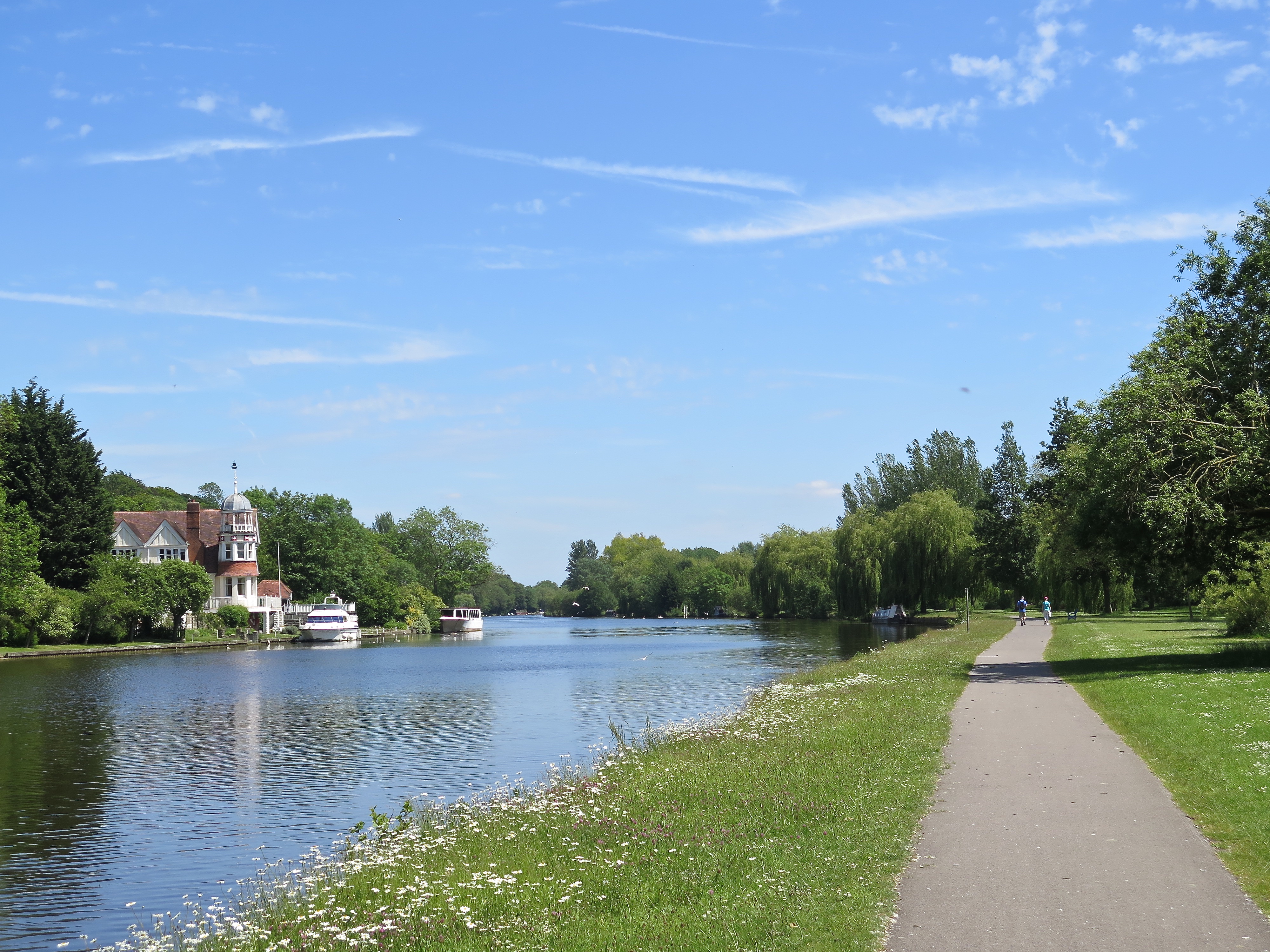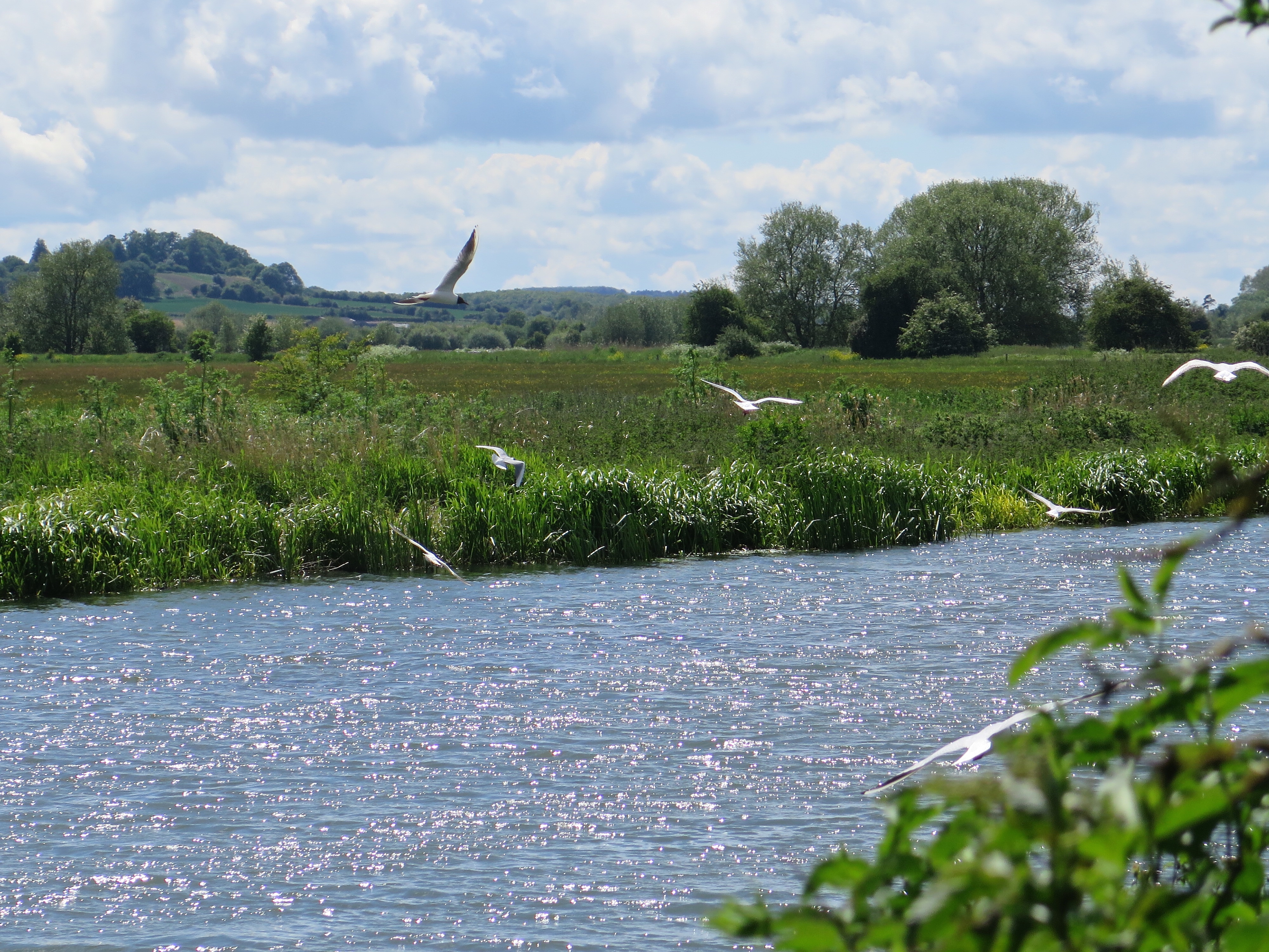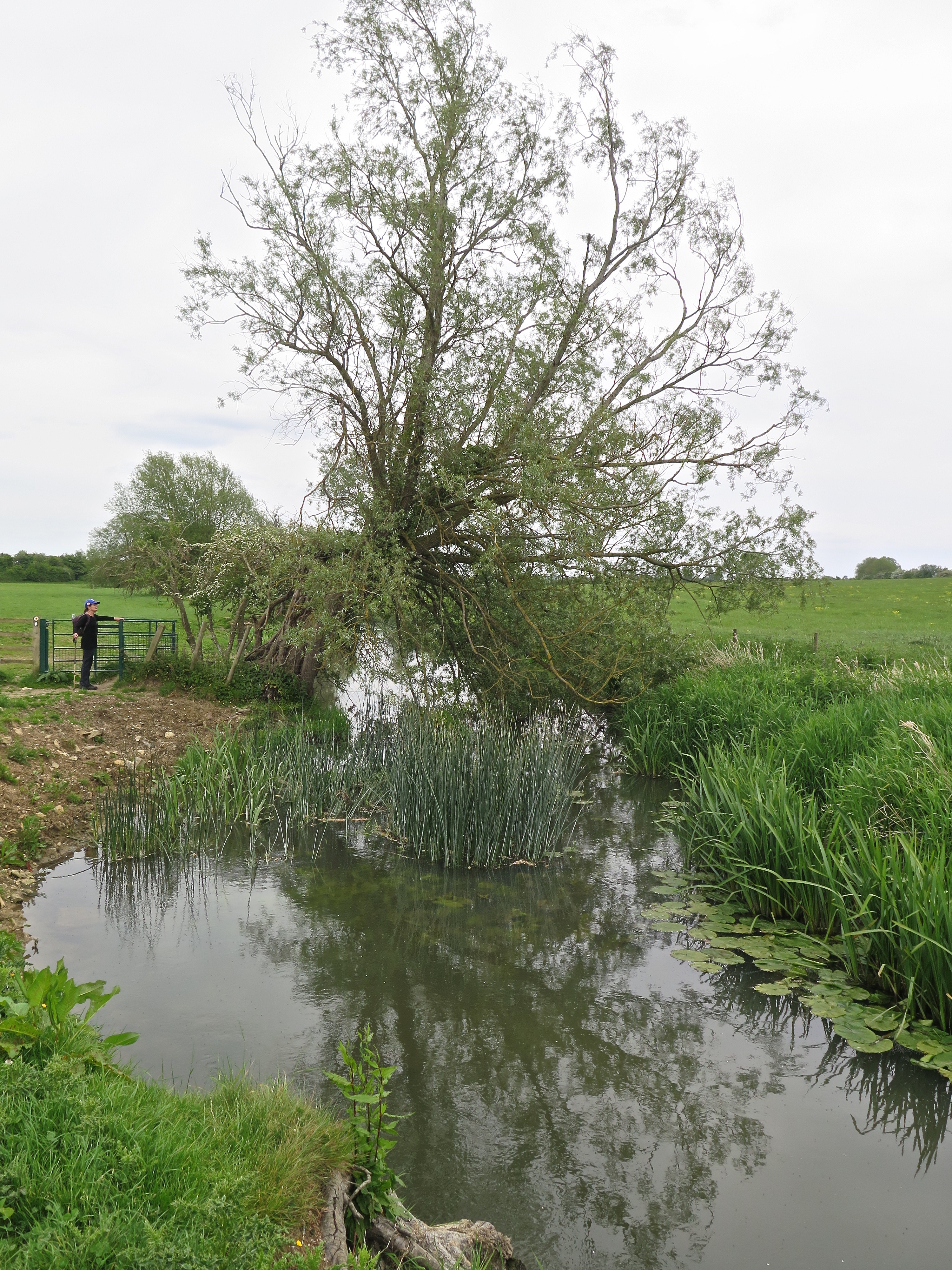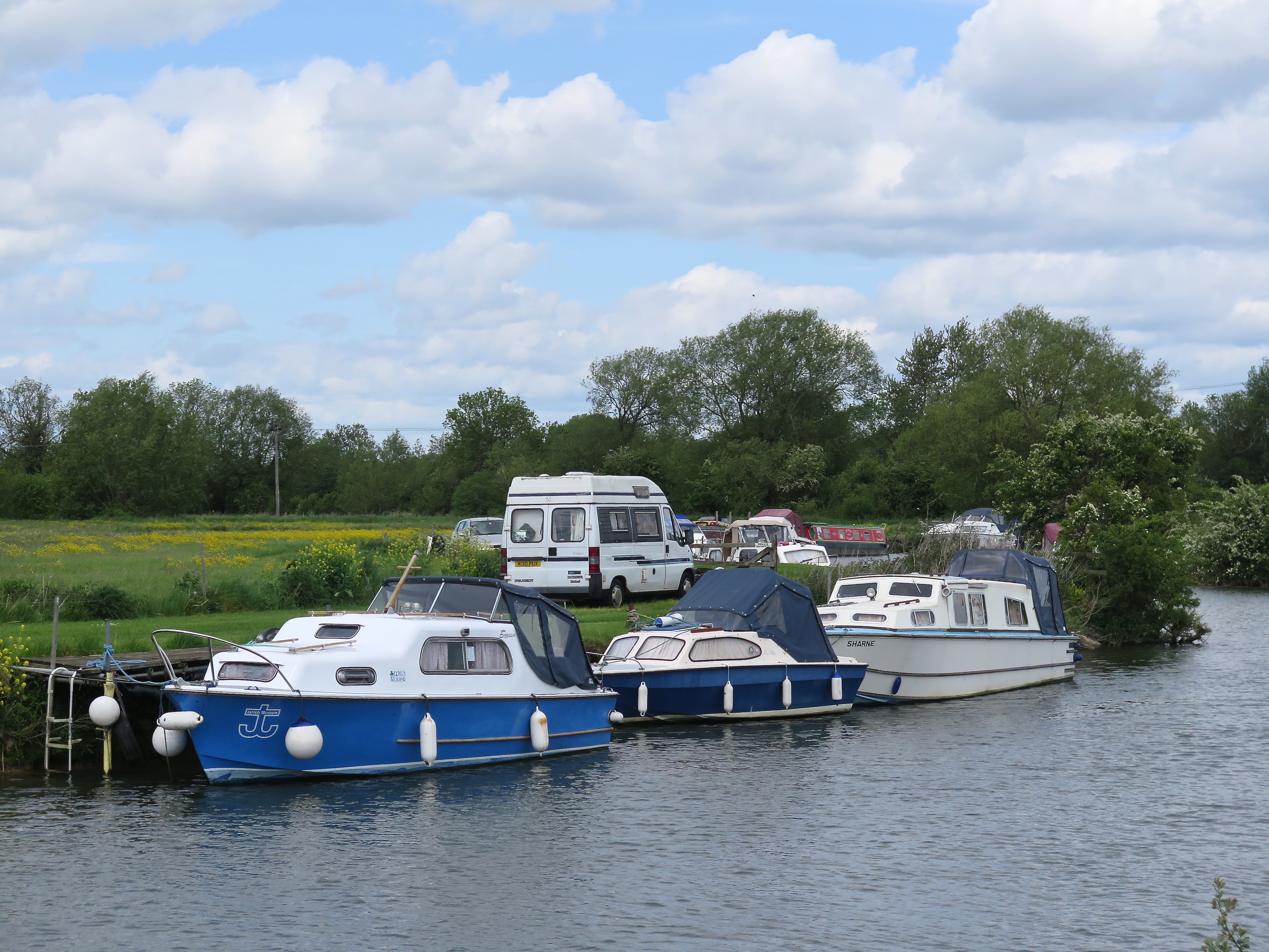 By Laleham we had returned to more bourgeois offerings. The BMWs were back in the drives. In the naming stakes ‘The Willows’ had replaced ‘Iris’s Wet Dream’. We veered off the Path again to find some refreshments at the Feathers pub (high marks) returning to walk around Dumsey Meadow, the only meadow in Surrey left with its original vegetation. It was lovely, full of buttercups, red clover and the other plants with which we had become familiar. Which was why I was surprised, looking across, that it had been chosen to locate what looked like a dump for old caravans and vehicles next door.