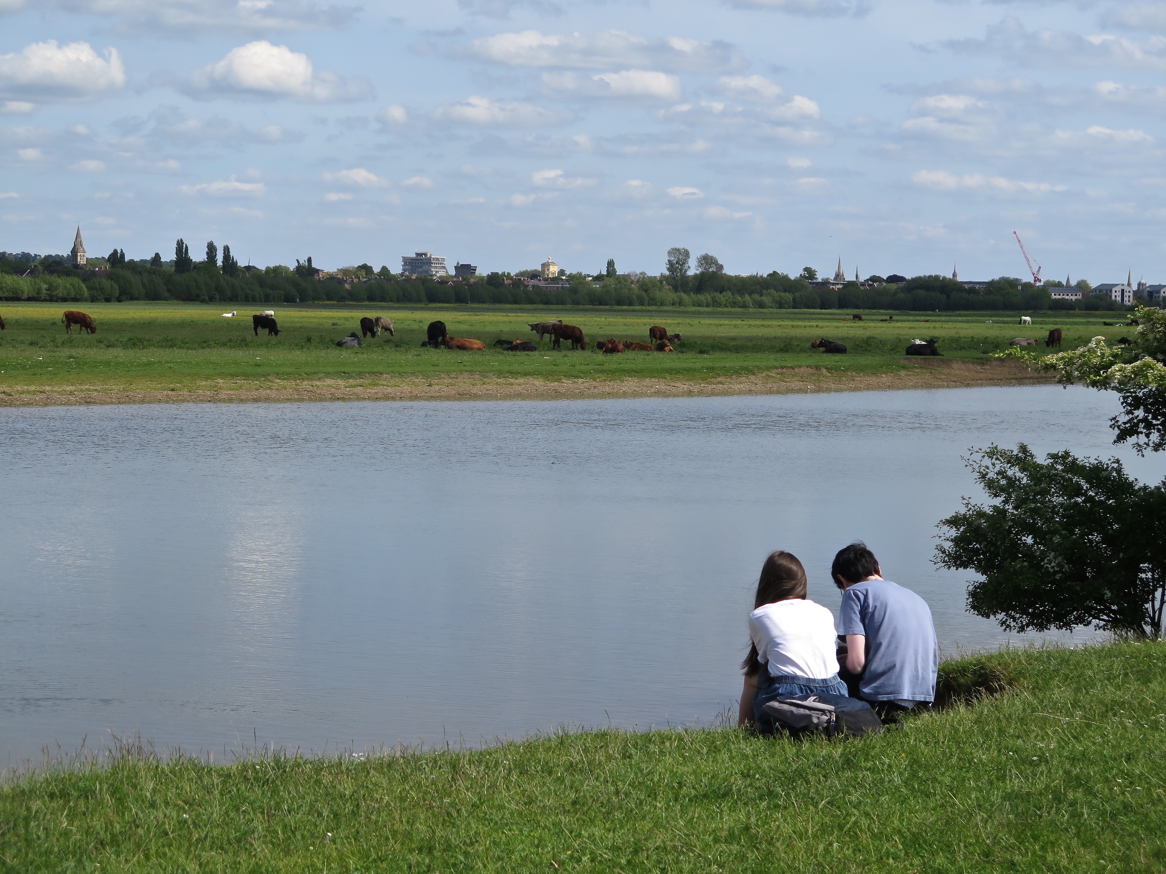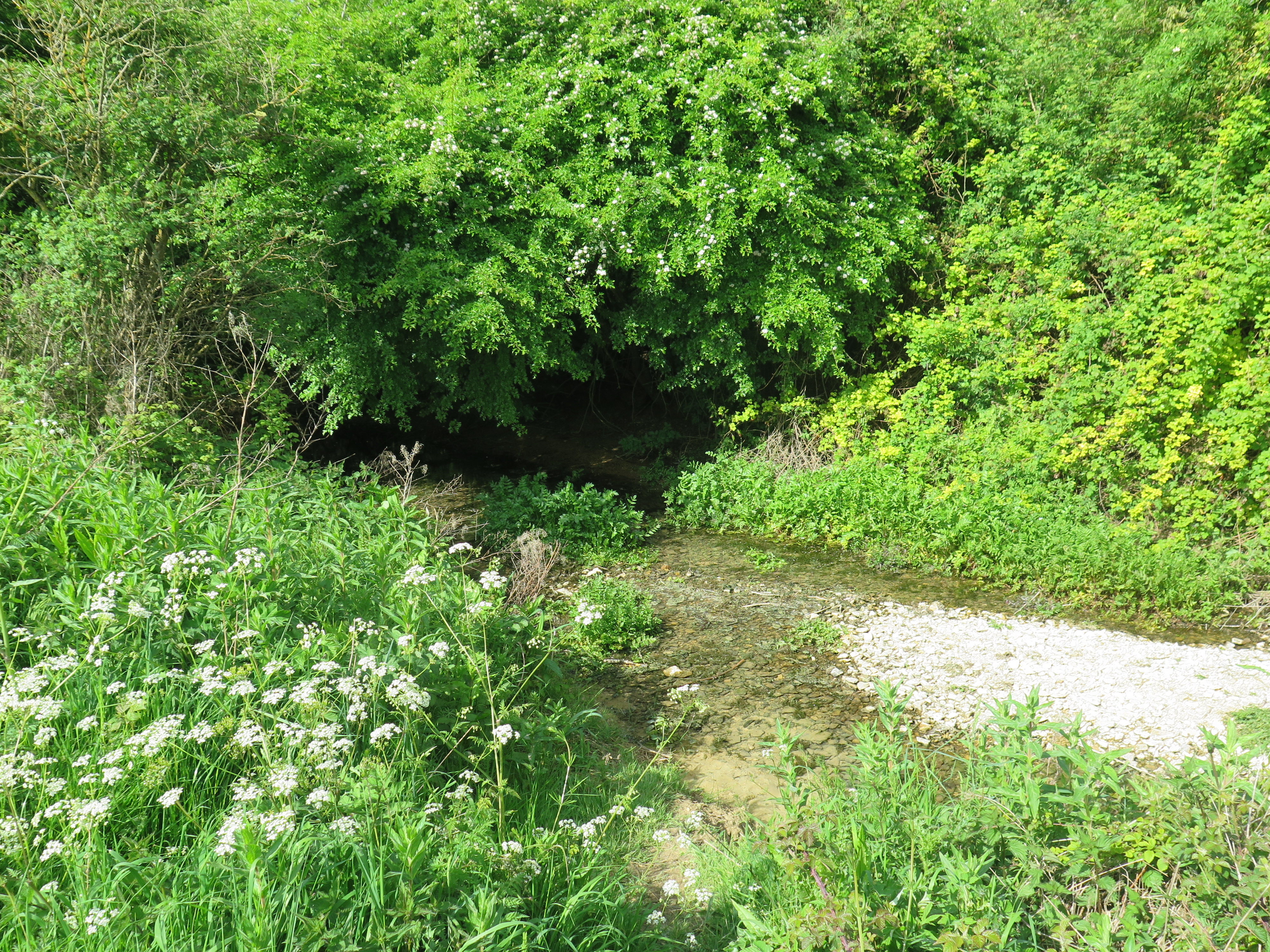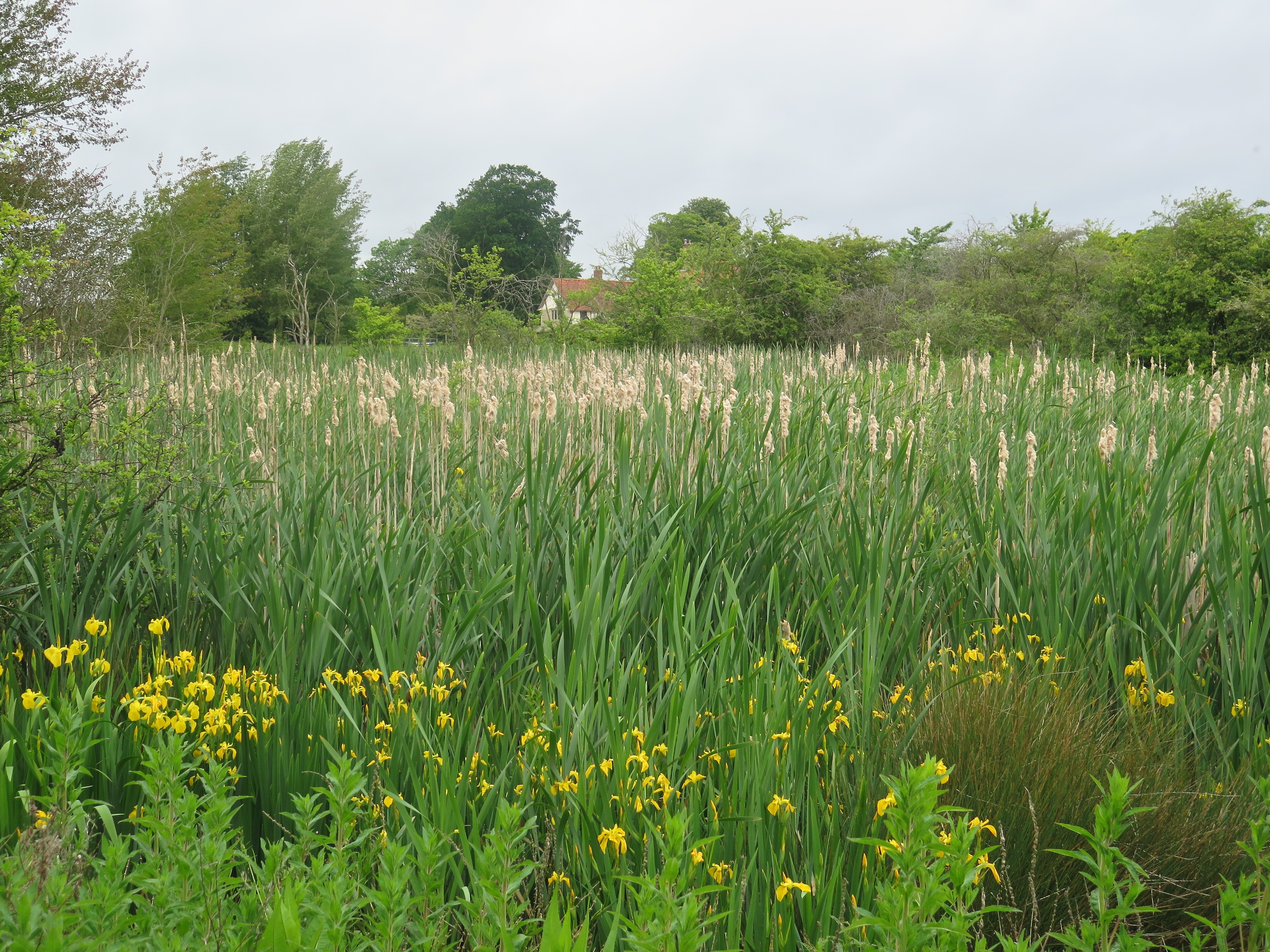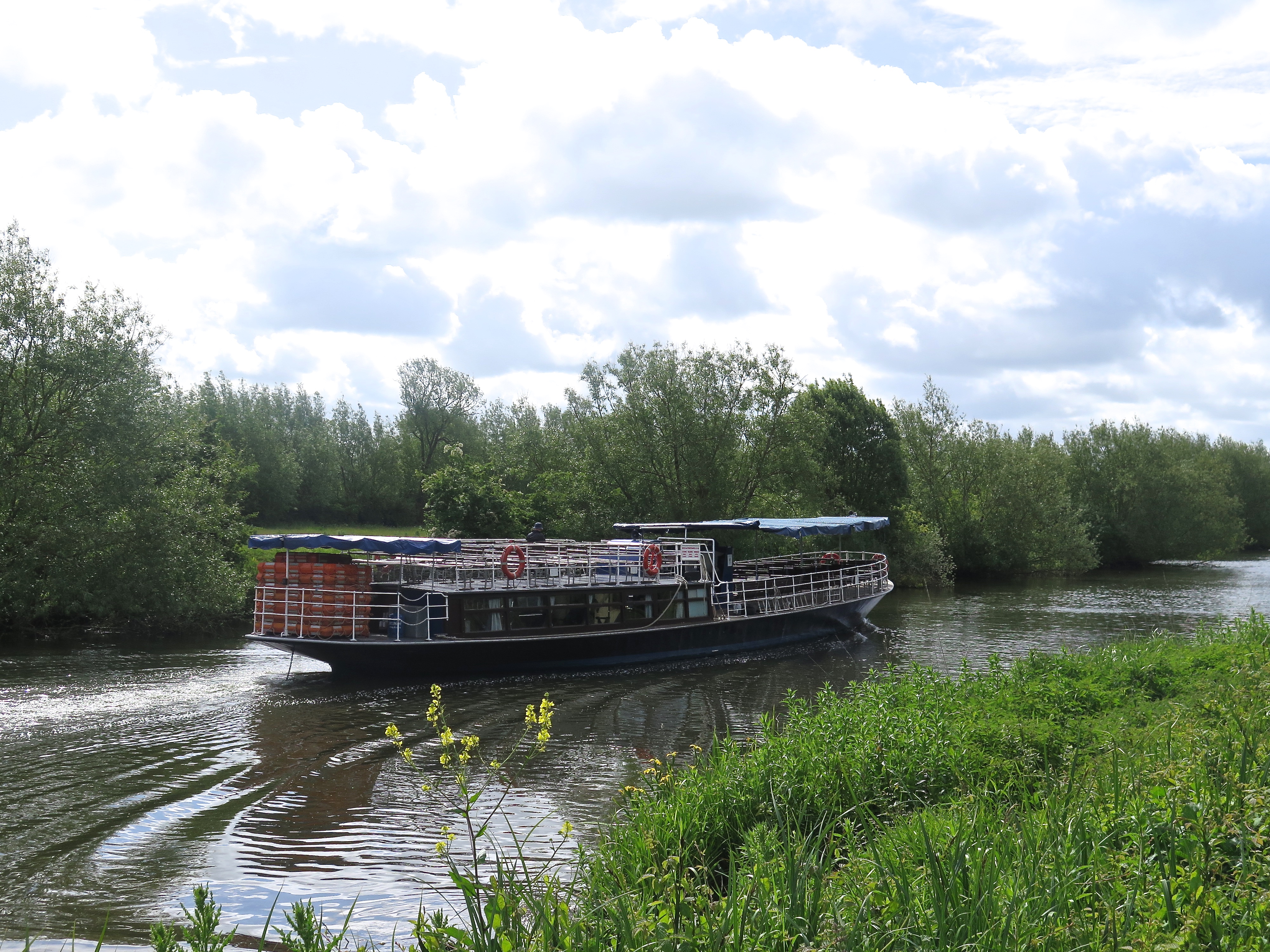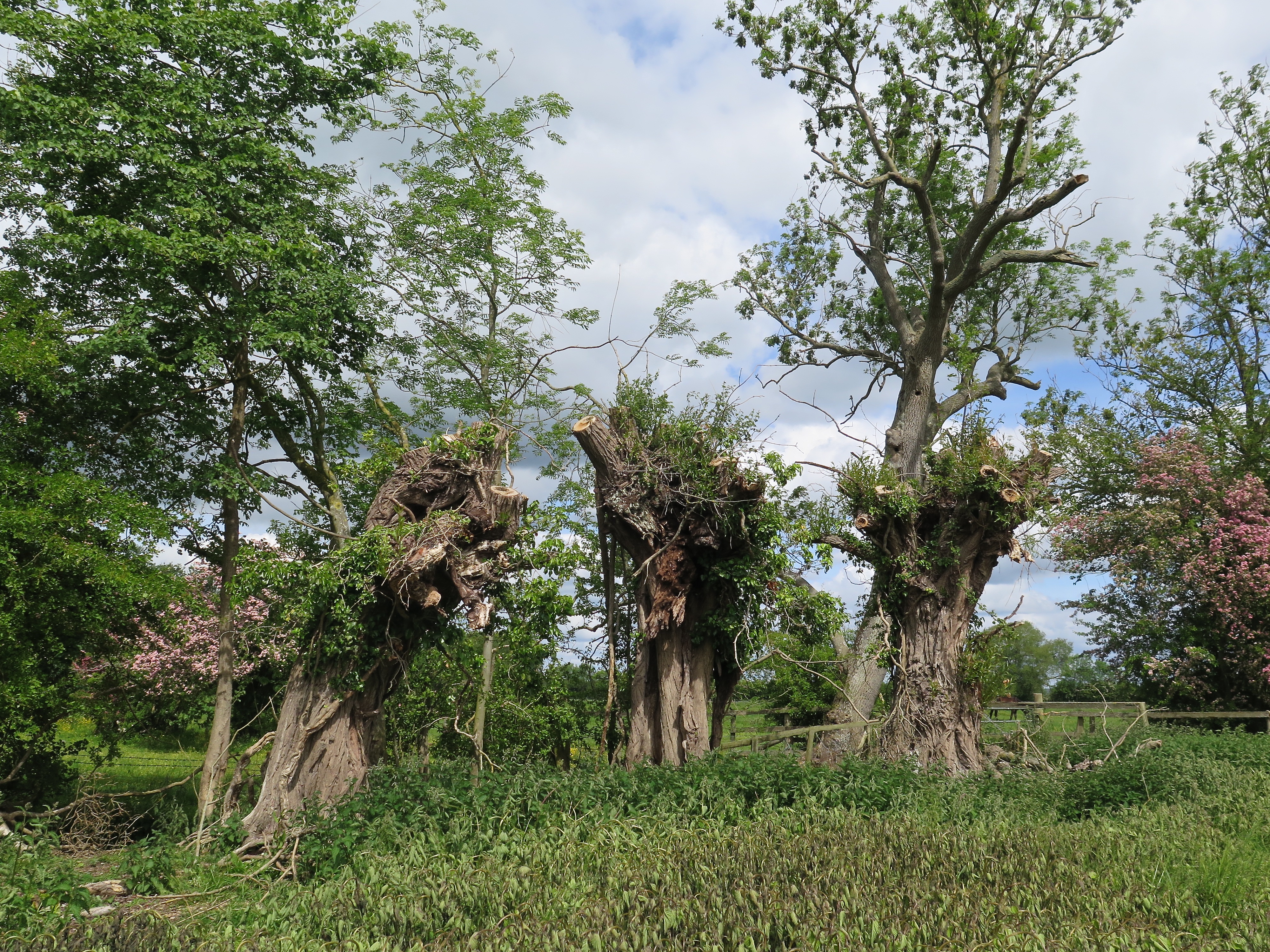 By Laleham we had returned to more bourgeois offerings. The BMWs were back in the drives. In the naming stakes ‘The Willows’ had replaced ‘Iris’s Wet Dream’. We veered off the Path again to find some refreshments at the Feathers pub (high marks) returning to walk around Dumsey Meadow, the only meadow in Surrey left with its original vegetation. It was lovely, full of buttercups, red clover and the other plants with which we had become familiar. Which was why I was surprised, looking across, that it had been chosen to locate what looked like a dump for old caravans and vehicles next door.