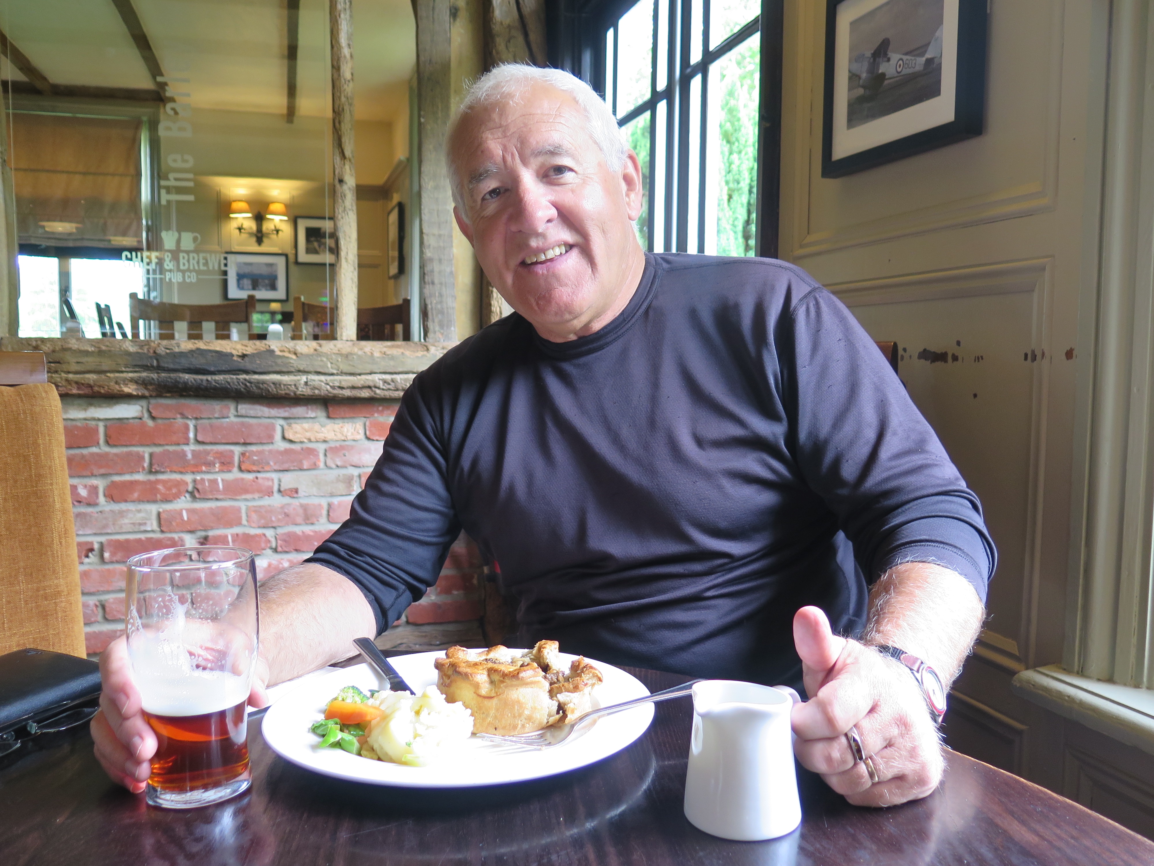 That night I wrote in my journal that I was missing what I described as the previous simplicity of the walk: look at the map, read the notes, eat, walk, sleep, then do it again. Myrna and I have often talked about the meditative quality of long walks. There may be some empirical basis for a belief that such a great deal of repetitive motion (in this case about 300,000 steps) reduces anxiety, or as I prefer to think, clears the crap out of your head. That certainly happens for me. The entry might have been about the increasing proximity of London and its urban tentacles, although I was looking forward very much to seeing our friends there. It might just have been closing in on the end. I don’t know whether I’ve got this across, but this was all pretty good fun. Whatever, it was a twinge of sadness.