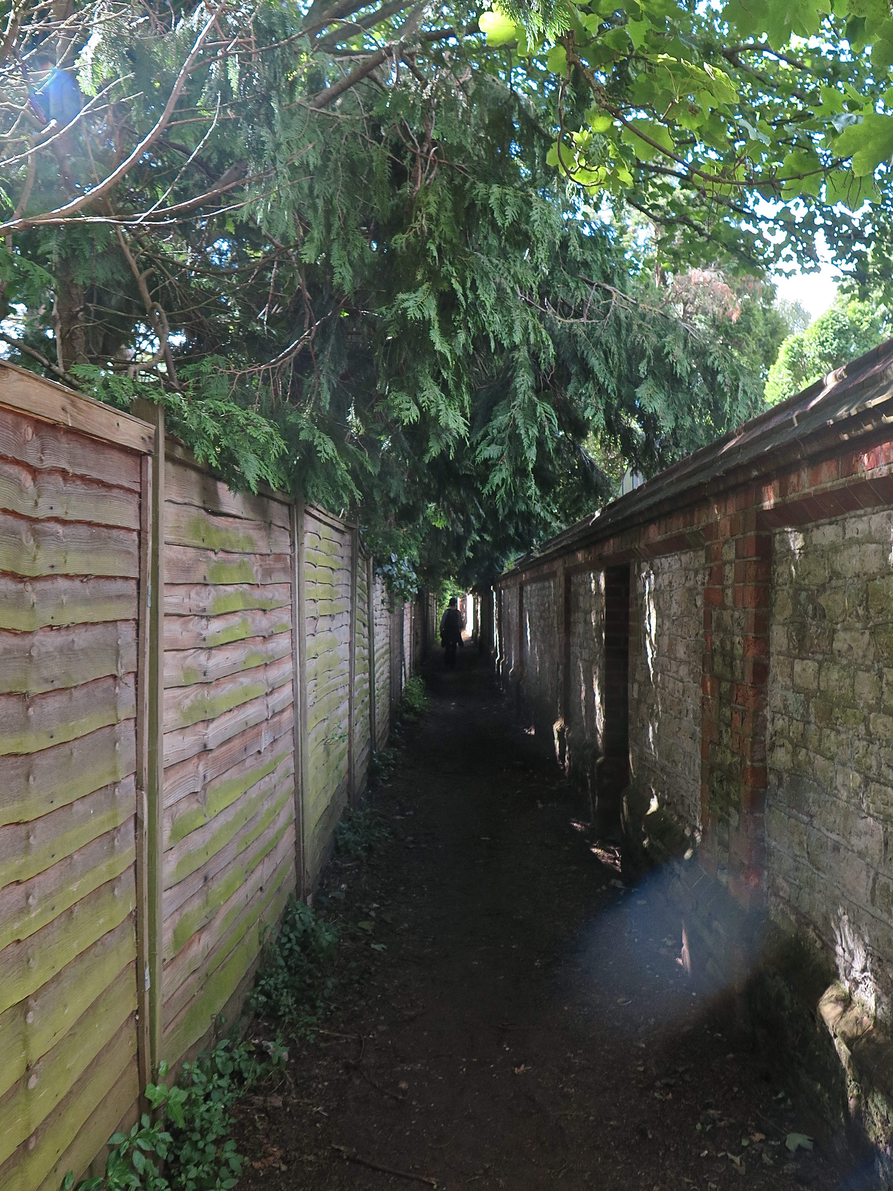 The rest of the day was spent walking through one of those strange nether lands that grow up around big cities, the transitional spaces, worked over for utilities, remnant green patches, perhaps sporting grounds, bits of farming life not far from apartment tower blocks, big fences and, here, complex water ways and reservoirs. We were quite tired by this stage — it had been big day, among other things we’d walked about 28km — and I found this disorienting and slightly surreal. As we walked the final kilometre along Ferry Lane with its huge mysterious hedges and then turned into a most unanticipated small village square set into all of this, I really wasn’t at all sure where we were.