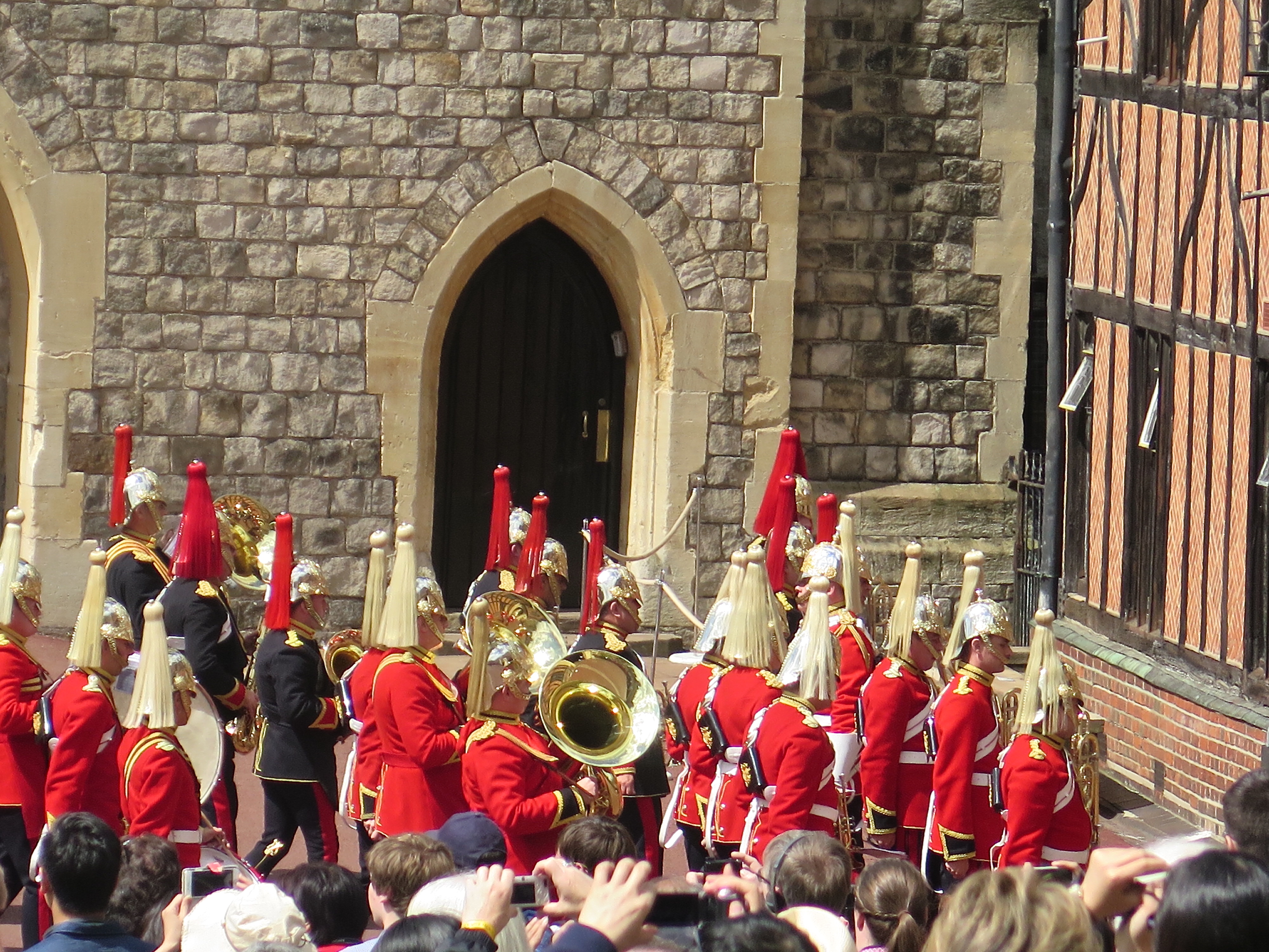 We were poking round in the book shop trying to work out who was who and why when the band struck up for the changing of the guard. I didn’t think I had to be interested but a band is a band and when you’re in the grounds of Windsor Castle with the opportunity to hear the theme from ‘Star Wars’ played by guys with either highly polished things or bits of animal coming down over their noses you go along.