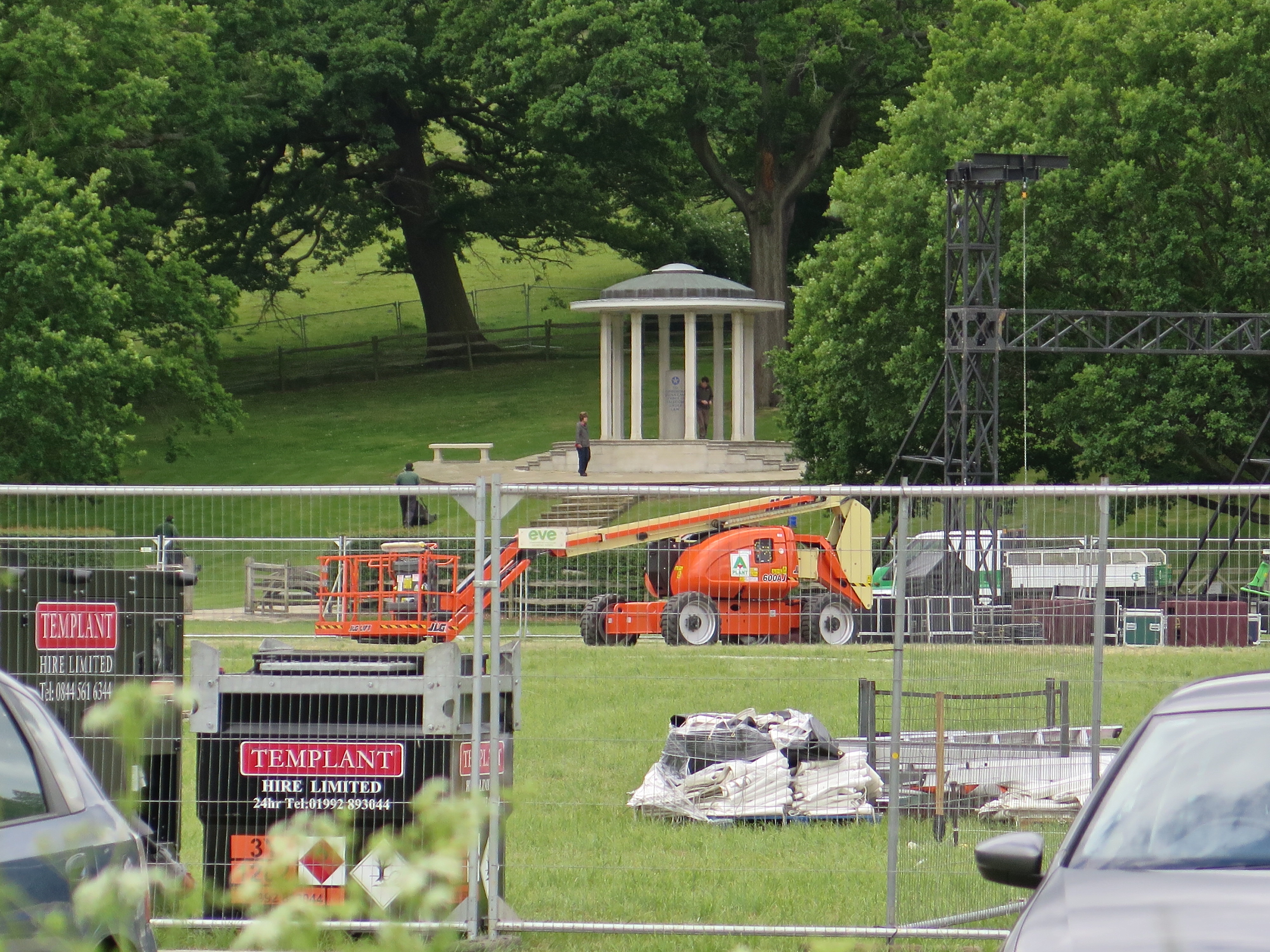 Just round the corner I decided to flout an explicit direction and pursue a shortcut across some public park — Runnymede Pleasure Ground now I look — where we encountered the events which provided the photo which began this blog: the installation of a new sculptural memorial to Her Maj.