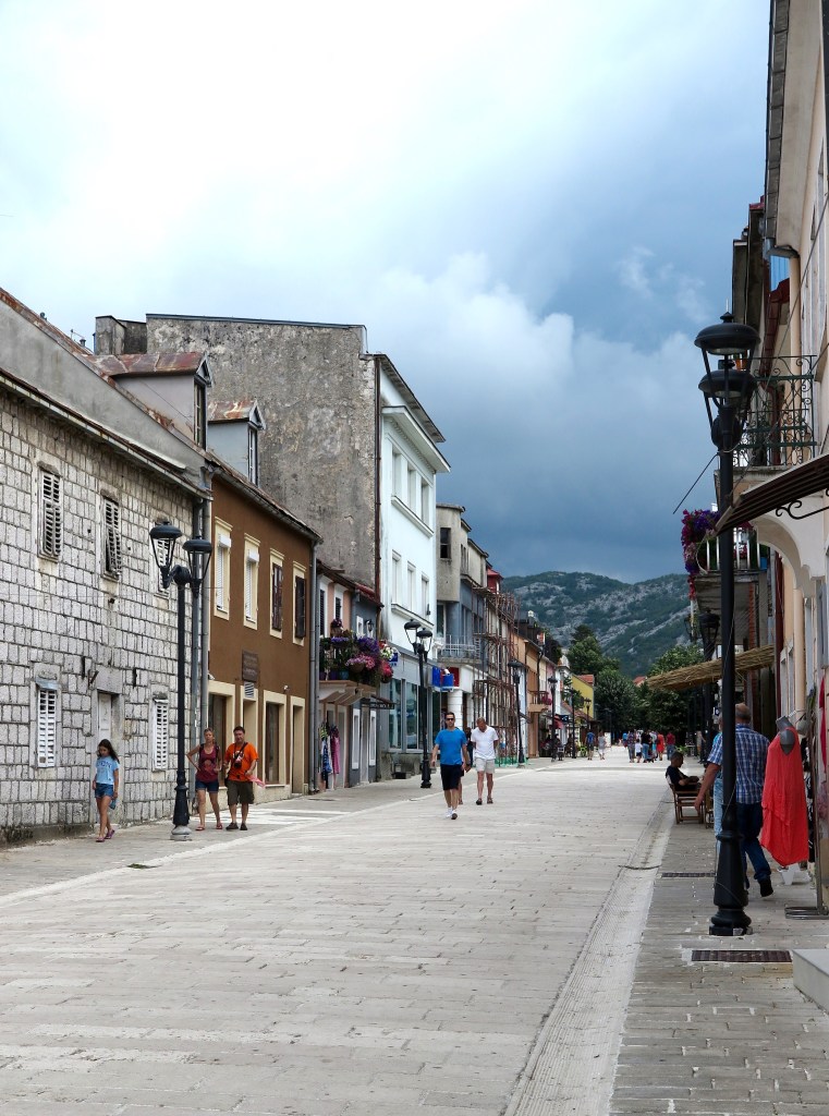 It was in fact a great drive, captivating for more reasons than Alex’s commentary. We went via Budva (above), Montenegro’s St Tropez where Russians and rich Serbs have their beach holidays to the extent that they had caused a massive shift in property values according to Alex, and Montenegrins can no longer afford to live there. And we went across the karst ridges, calcium grey with strips of green hanging on tight to gullies and cracks, to Cetinje, the old capital, at the foot of Lovcen National Park where we would have arrived on Vlatko’s schedule and at about the same time. But instead of spending five minutes (or two hours) passing through we were able to stay most of two days at what was once the world’s smallest national capital.