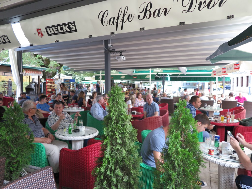 Along with most others who were out and about, we sat down at the Caffe Bar ‘Dvor’ (‘palace’) in the main square. And then it rained.