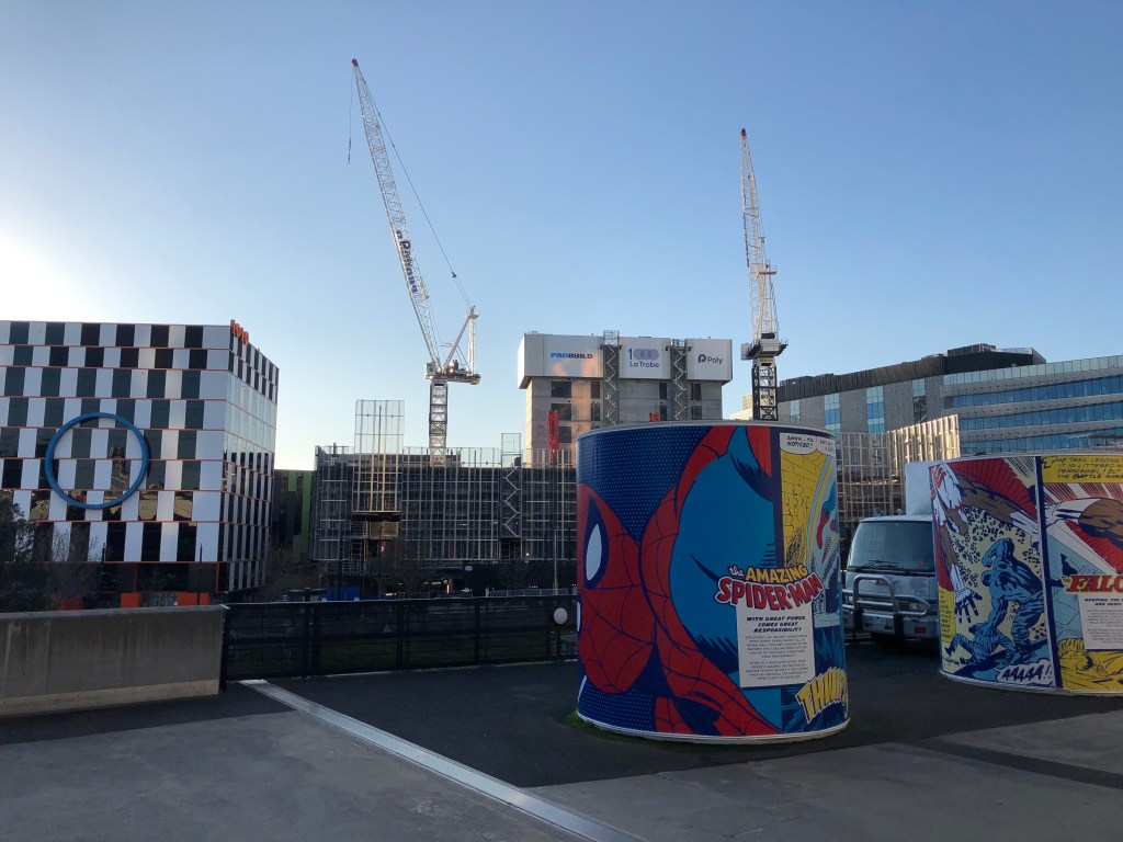 I stretched out a mid-morning trip to Essendon to deliver some newly-made medical scrubs to a Pakistani Australian (nurse? aide? doctor?) with his two gorgeous young children who lived in a recently constructed suburban mansion. As always Essendon seemed Catholic and hilly and in the morning cold, and despite the endless family muscle cars, slightly frozen and surreal. Weird for weird times.