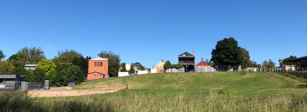 The Town Hall, decidedly grand for a town of 3000, is over the road from Le Péché Gourmand. When we passed it strolling down Water St, we’d started. We turn right after the worker’s cottage with the Che Guevara poster in the window. Perhaps the whole of the Central Highlands is a hotbed of left wing opportunism.