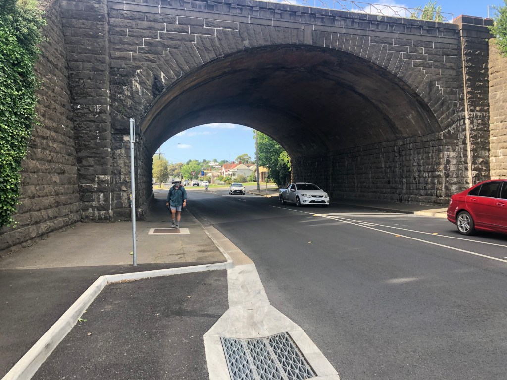Turned right here, mask on, with another kilometre or so still to go up the Mair St hill. It had been a big day. I was feeling every one of those 28 kms in my legs, but a wonderful walk definitely whetting the appetite for more. What would the next bit be like? And it wouldn’t really be the next bit: it would be the first bit, we were going back to Mt Buninyong to follow the track into Ballarat.
