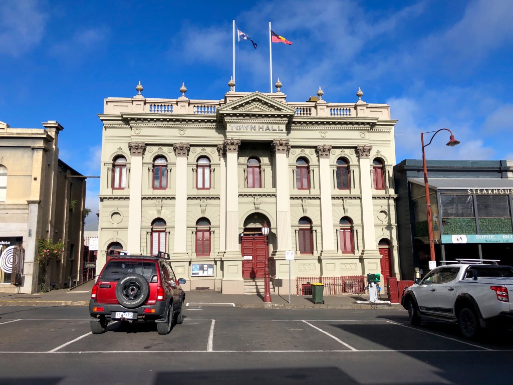 What to say? Queen Victoria memorial fountain, cnr. Raglan and Howe Streets. Erected in 1902 via public subscription including proceeds from a well-attended performance of H.M.S. Pinafore. Made out of rubble and concrete it was in a bad state of disrepair by 1991 and so we are looking at a copy about 30 years old, the male caryatids looking determined if a little unhappy to support their dish, the women simply resigned to their lot. In the background a hotel with cast iron lace, a period feature. But from here we are within striking distance of dozens of food shops or, as one might say in Daylesford, providores, and ambitious restaurants — we are looking towards Kadota, but as well The Lake House, Frangos, the Farmer’s Arms, Sault, Larder, Bistrot Terroir, and on — as well as some less aspirational but still mostly satisfying. Because we are in Daylesford, and that’s what you have in Daylesford.