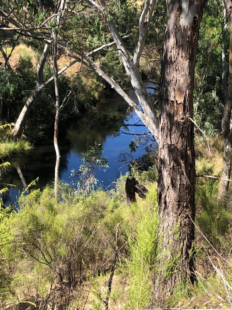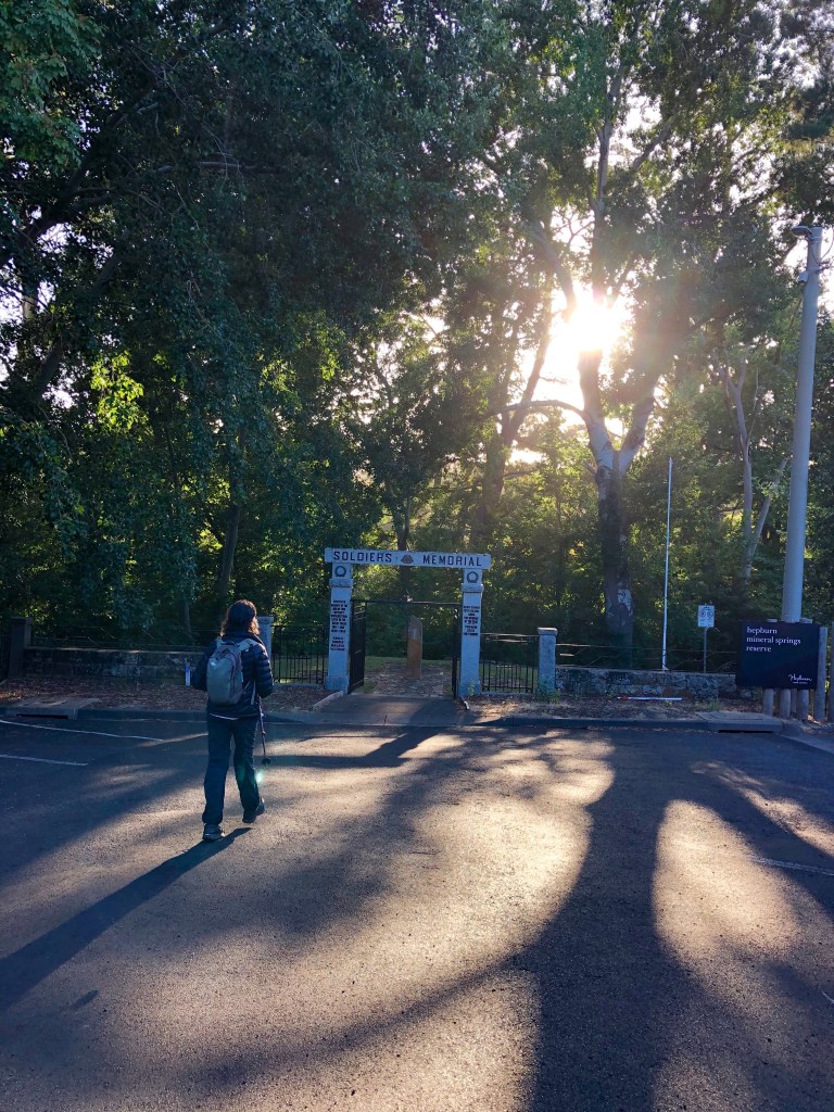 It began at 5.45am which is well before the time I start functioning. Hours before. A long day was ahead. The guidebook’s distance is 28 km and that’s plenty, but we always seem to wander a bit beyond official distances. It was going to get hot as well, so good to get as much distance under your belt by lunch time as possible. Plus we needed our car at the other end because we were moving accommodation from Hepburn Springs to Castlemaine. I asked the excellent motelier at the HS Motor Lodge if she would consider following me to Vaughan Springs and then bring me back so we could make all that work, and she most obligingly agreed.