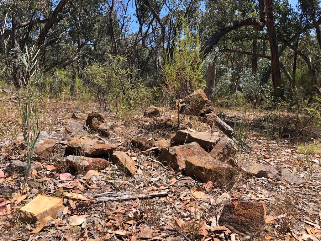 Around the time we came to Brown’s Gully the signs of human intervention were becoming more pronounced, even to things like this, a pile of handily squared-off stone, in this case natural, in others the work of a chisel and a mallet. But these have been busy diggings.