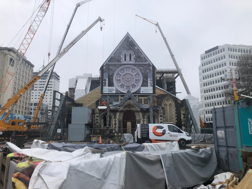 We arrived in Christchurch. It is still in recovery. It is unlikely to ever be the same as it was before the giant earthquakes of 2010 and 2011 which killed 185 people and shook its centre, including its cathedral which used to dominate the city square, to bits. It is a moot point whether hundreds of millions of dollars should be spent restoring this building. Do you justify it, as a Kiwi friend did, by referring to its iconic historical status or, as her husband suggested, do you put your money instead into rebuilding the stadium, home of the Crusaders, the greatest rugby club on earth? The cathedral remnant is still not secure enough to enter to determine precisely what needs to be done. The good-looking facade is a banner. I thought Wow! Naylor Love! sponsoring the rebuild of the front wall and window, go for it you civic-minded creatures you. But in fact they’ve just sponsored the banner.