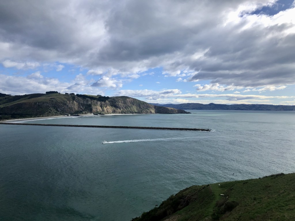 Dunedin is at the end of a long bay, Otago Harbour, with the Peninsula famous for its sea life on its southern side.