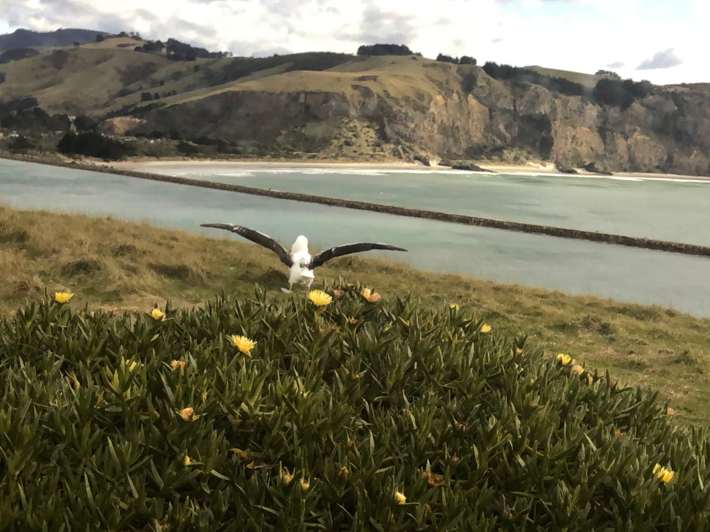 Taiaroa Head is one home for about 5 percent of all the albatrosses in the world. They mate here, commonly for life, and produce one egg which is nurtured by both parents taking turns to go fishing for chick feed. The chick’s first flight, which for the one above might be 3-4 weeks away, is to Chile 10,000 kms away. Their first flight! which takes them 10-15 days! They are able to lock the tendons in their wings which have a 3+ metre span and coast on upper level air currents using only as much energy as they would sitting on the ocean surface. They stay in Chile for five years sowing their wild oats and return to the Otago for responsible parenthood. How do they know how to get here? No idea. Some say via smell. There are some orphan chicks here which are incubated, fed and nurtured by the Centre’s staff. The oldest regular visitor was Grandma, who was still breeding at 60. (If you’re interested.) It has been a sanctuary since 1927 and is a most impressive place.