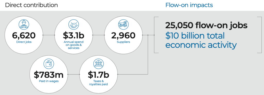 And Glencore … Glencore might be a major contributor to the well-being of NSW (and Australia). Oddly, the page I first opened at the cafe in Denman to prove this has been taken down just a week or two later. I have been present at a change in company branding! I admired the original because it was so fulsome, a work of marketing artistry, suggesting that the company’s extraction of coal has always been little more than a byproduct of its operations if not an afterthought. But that particular page is not there anymore. Instead of environmental good works, scholarships for Indigenous kids and pumping huge amounts into community playgrounds — it’s the economy stupid.