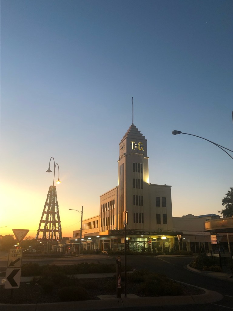Last light in Horsham. It’s hot. And it’s the T&G building soaring above the plain.