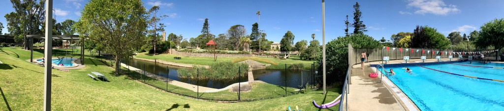 Strathalbyn is 14 kms from the Langhorne Creek wineries, one reason for going there. But there are others. Two of them are the Strath Motel and breakfast at the Hammer ‘N Tongs. This startlingly verdant memory of England sits in the middle of a flat brown plain.