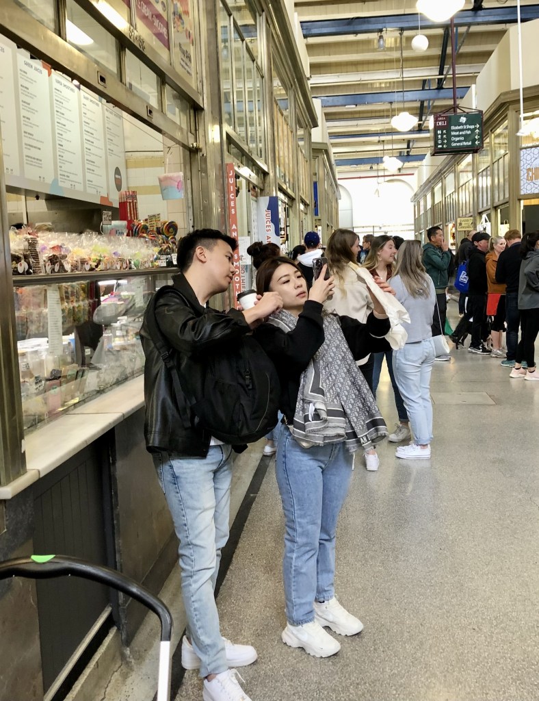 Photographing a bourek, a bourek! in the Queen Vic market.